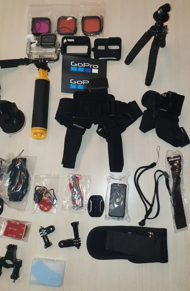 Очень быстрая доставка - 9 дней!!! Все аксессуары пришли согласно описанию (кейсы, крепления, защитные стекла, липучки и т.п.). Единственное - floating bobber не выглядит так, как изображен на фотографиях. Не уверен, что он вообще для погружений. Хороший и удобный чемоданчик. К 8 black всё подошло, без нареканий.