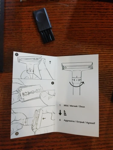 В целом: Очень хорошо; Нет ничего лучше за цену. Товар: Прочный, приятный на ощупь и очень хорошего качества. Вы можете просто подъемить верх и очень быстро поменять лезвие. Вы можете постепенно регулировать агрессивность бритвы. Стоимость-за цену вы получаете безопасную бритву, небольшую щетку для очистки бритвы, подставку, много лезвий и небольшую коробку для хранения использованных лезвий. Плохо: Так как вам нужно использовать немного силы для поднятия верха, верх открывается очень быстро, и лезвие имеет шанс быть брошенным через ванную комнату. Поэтому вам нужно быть внимательными и медленно снимать сверху. Внутренняя часть упаковки (лезвия бритвы) была немного пыльной/грязной.