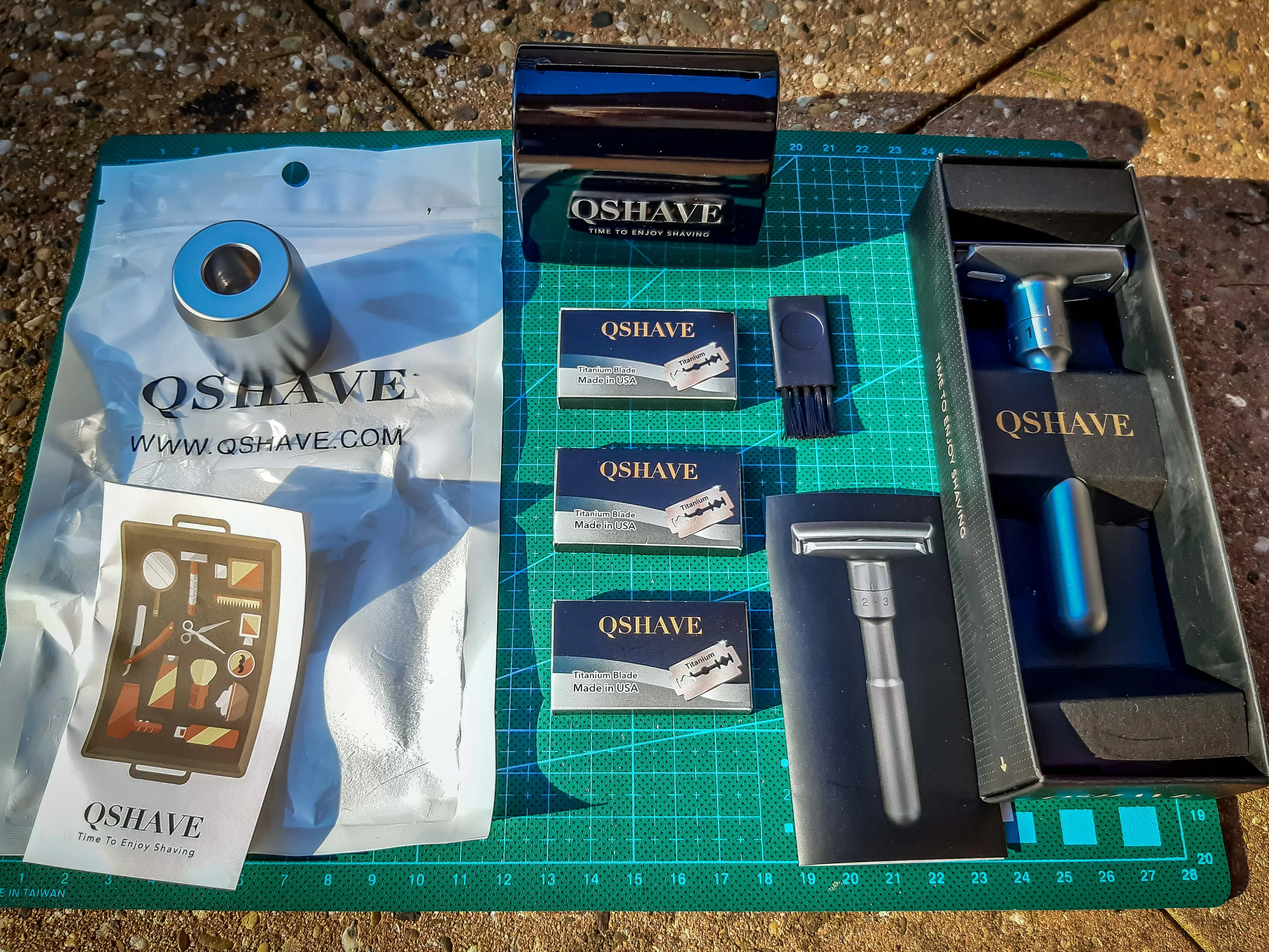Бритвенный набор QSHAVE, регулируемая Безопасная бритва, держатель, лезвие, чехол для одноразовых лезвий, 15 лезвий
