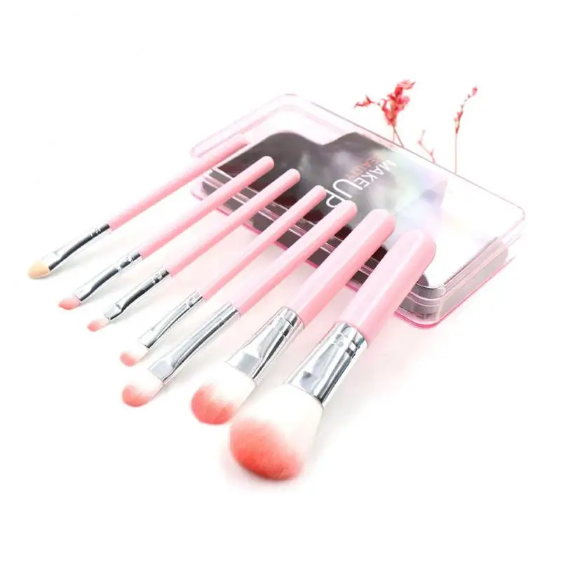 Pro 7 шт./компл. набор кистей для макияжа для женщин для лица, палитра теней для глаз, основная пудра, подводка для глаз, румяна, кисть для губ, деревянные косметические кисти