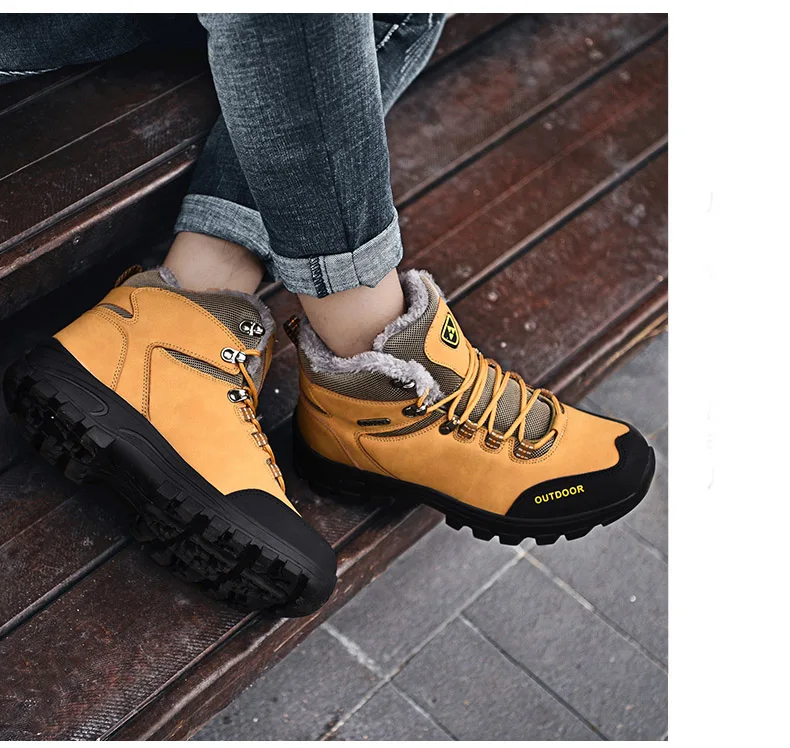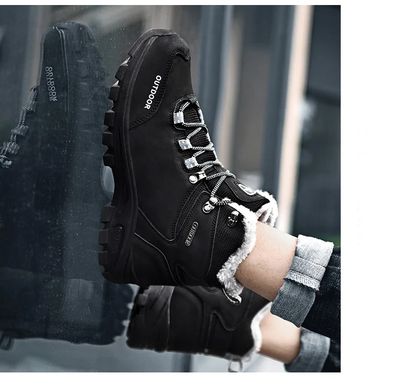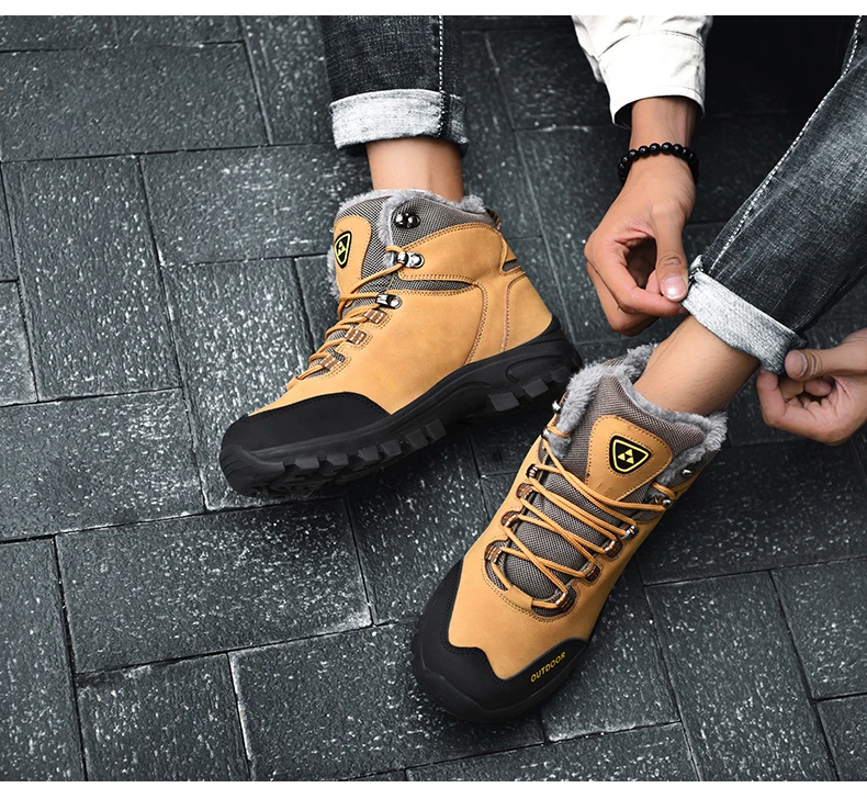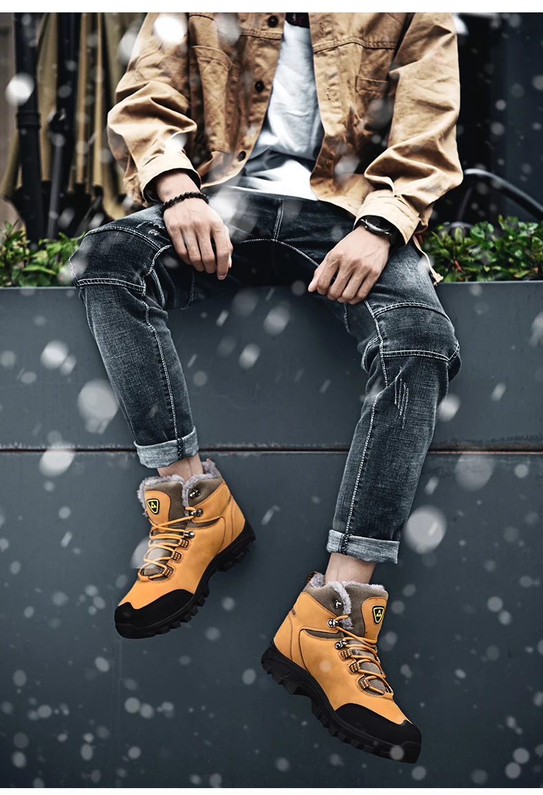 Jackshibo мужские теплые ботильоны с меховой подкладкой, водонепроницаемая повседневная обувь, уличная спортивная обувь для походов, зимние ботинки