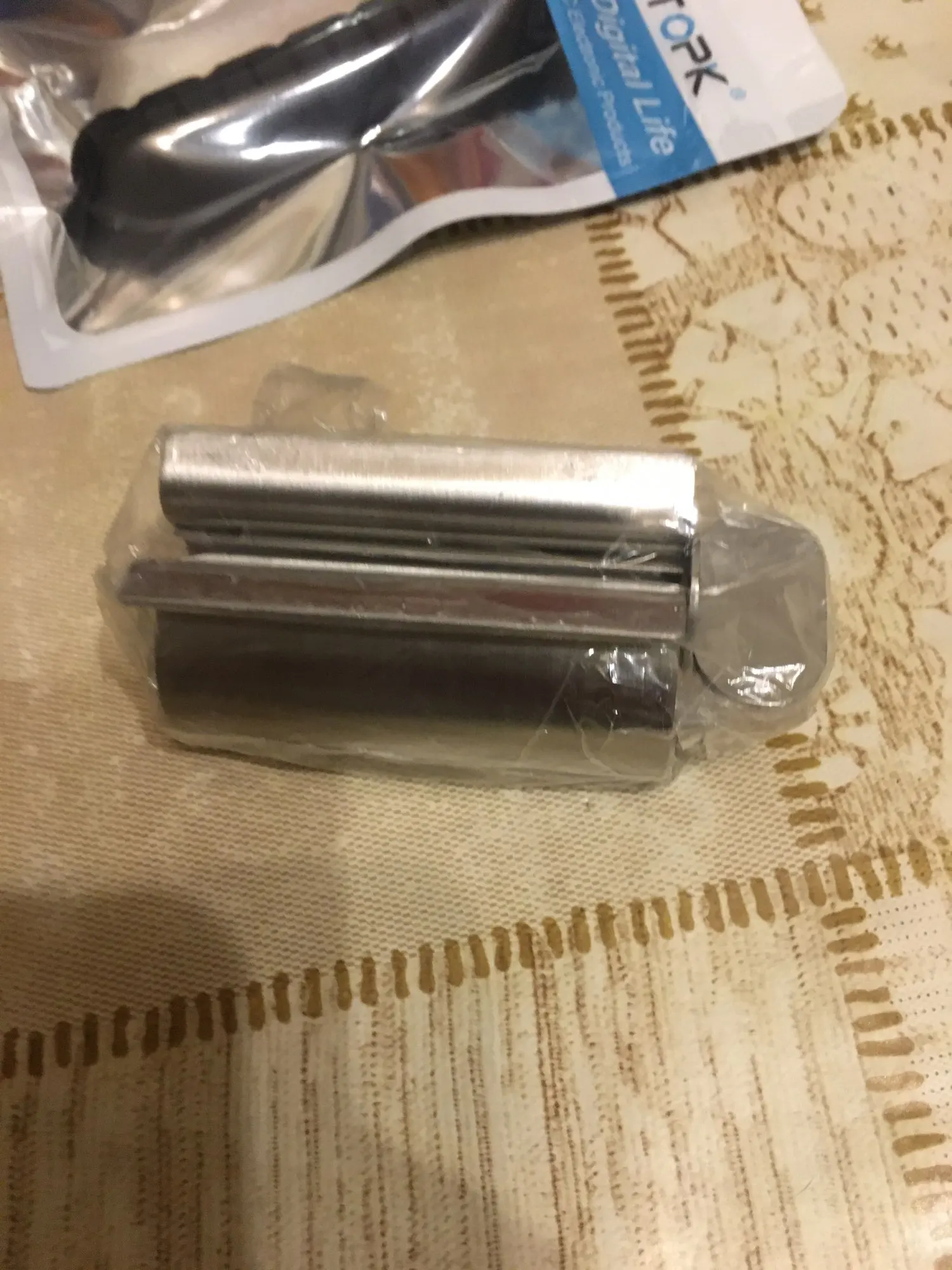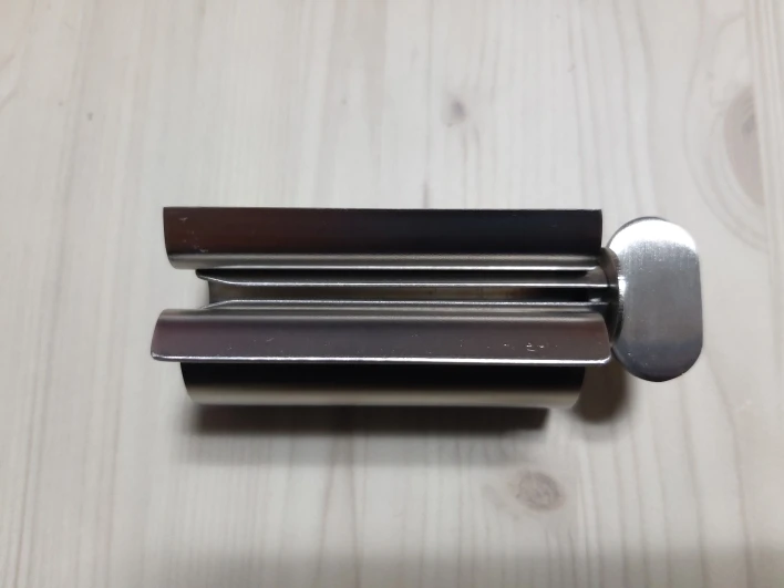 классная отжималка тюбиков, усилия хватит чтобы порвать при желании. Нержавейка, толстая, кромки могли получше притупить.