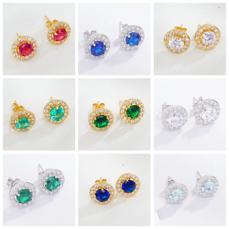 Серьги-гвоздики женские круглые золотистые, белые, золотистые, 12 цветов