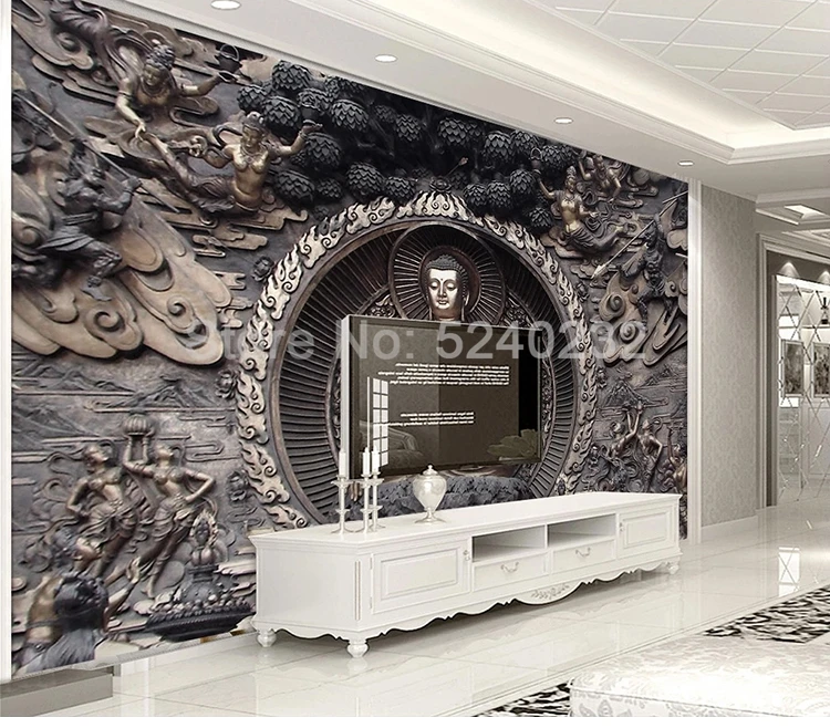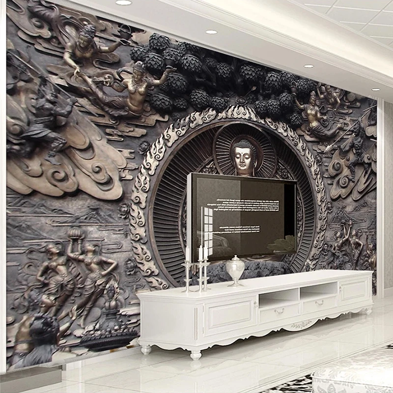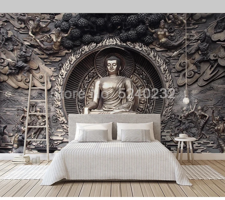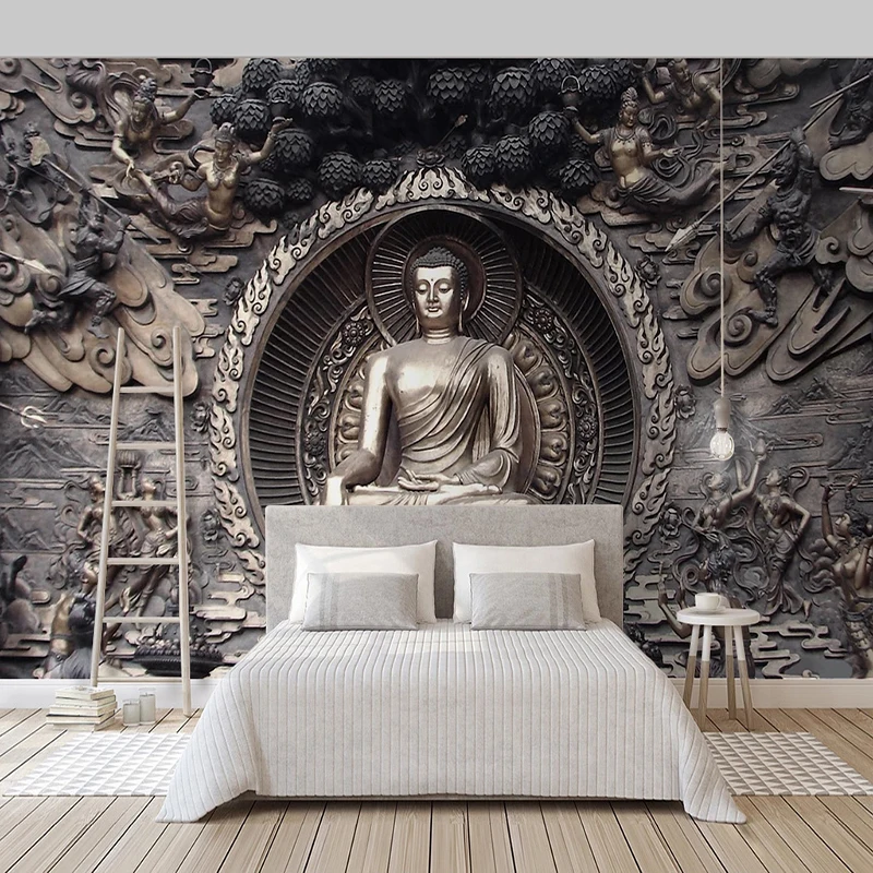 Пользовательские 3D стереоскопические рельефные статуи Будды фото фон декор художественные обои для гостиной украшение папье Peint Фреска