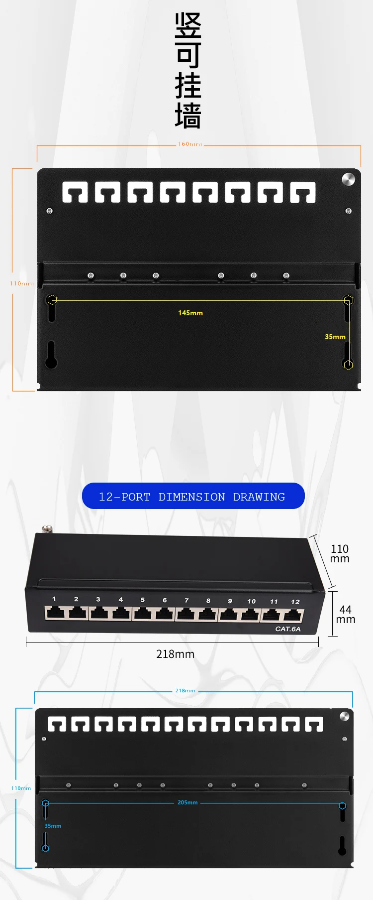 Настольная мини-панель CAT6A Cat6 8 12 портов, полностью экранированная, для настенного монтажа (в т. Ч. Подвесные винтовые отверстия)