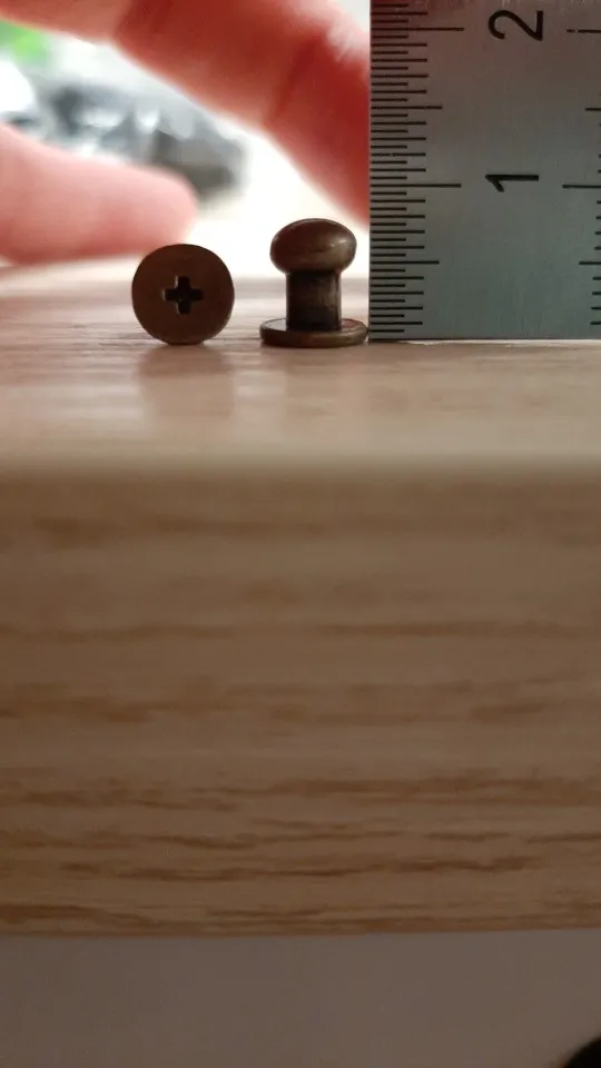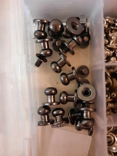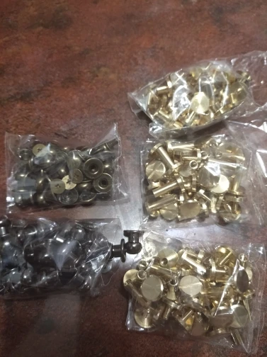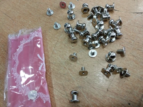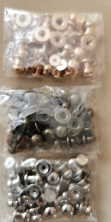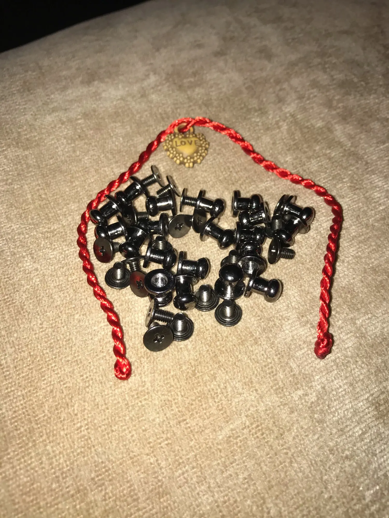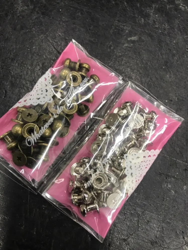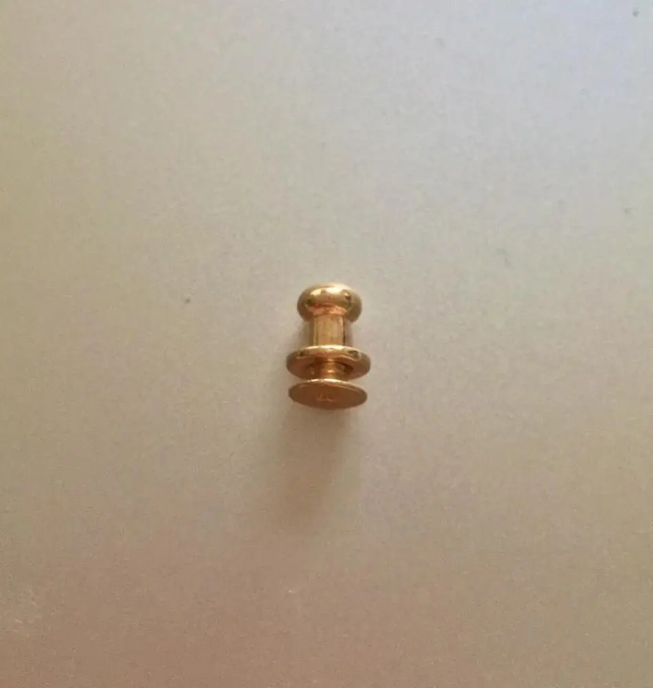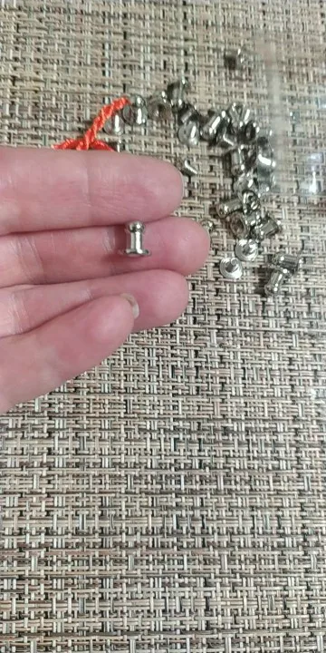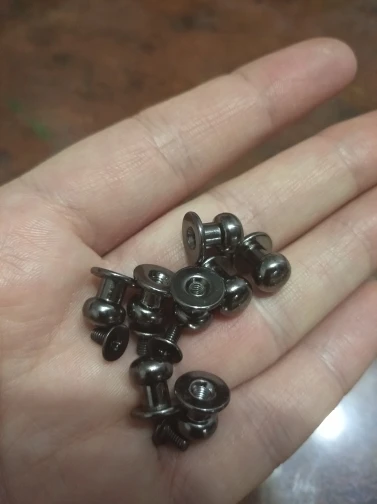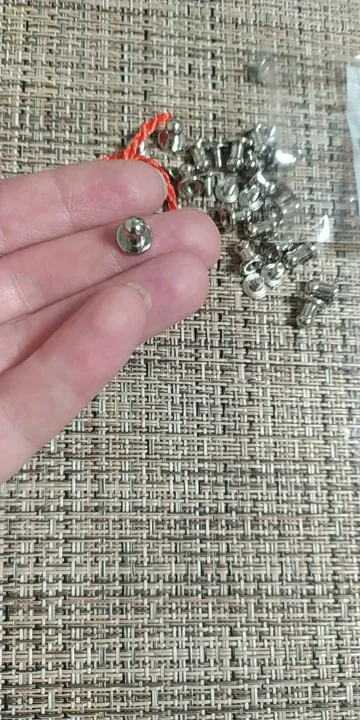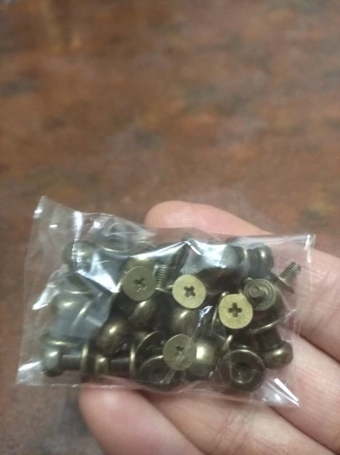 Отличные болты. Глянцевое золото. Аккуратные. Даже лучше, чем были на сумке при покупке. Купила, чтобы обновить фурнитуру. Шуруп ввинчивается в болт не до конца. Рассчитано, что между ними будет минимум 2-3 мм материала.