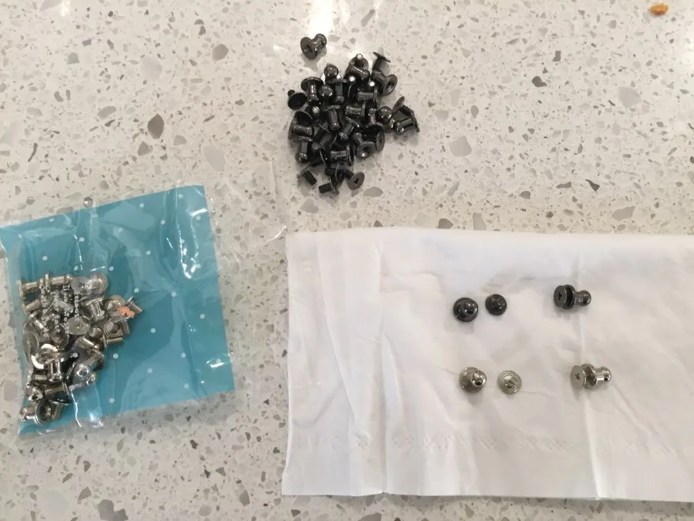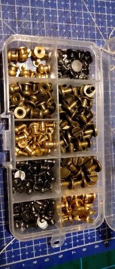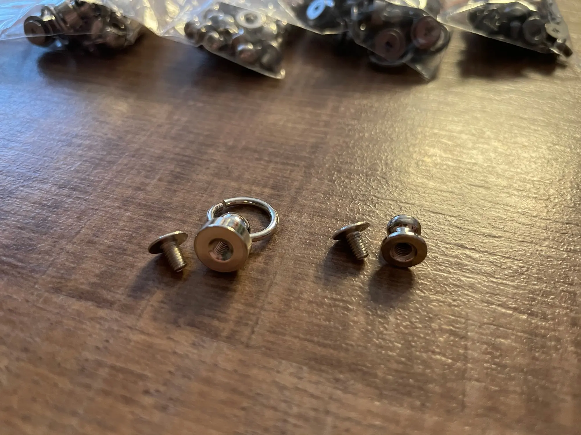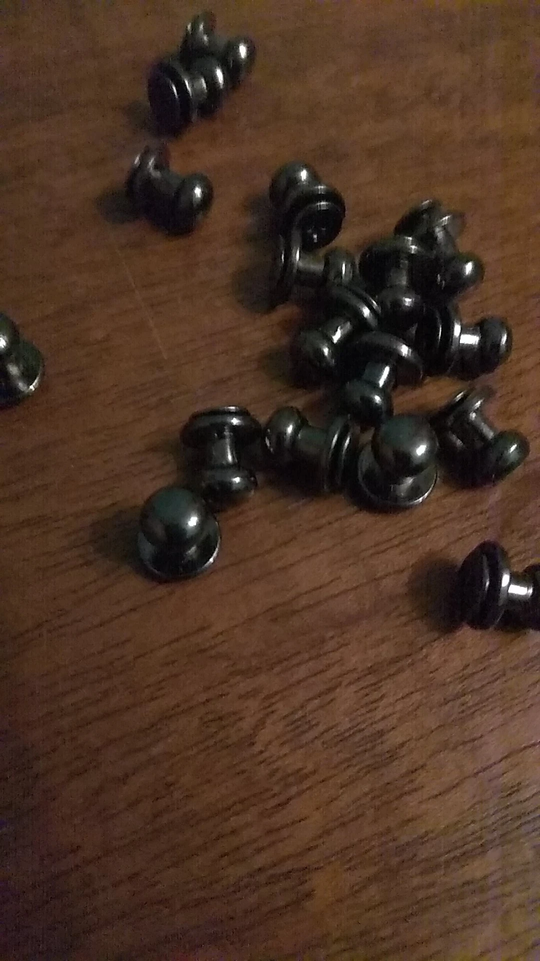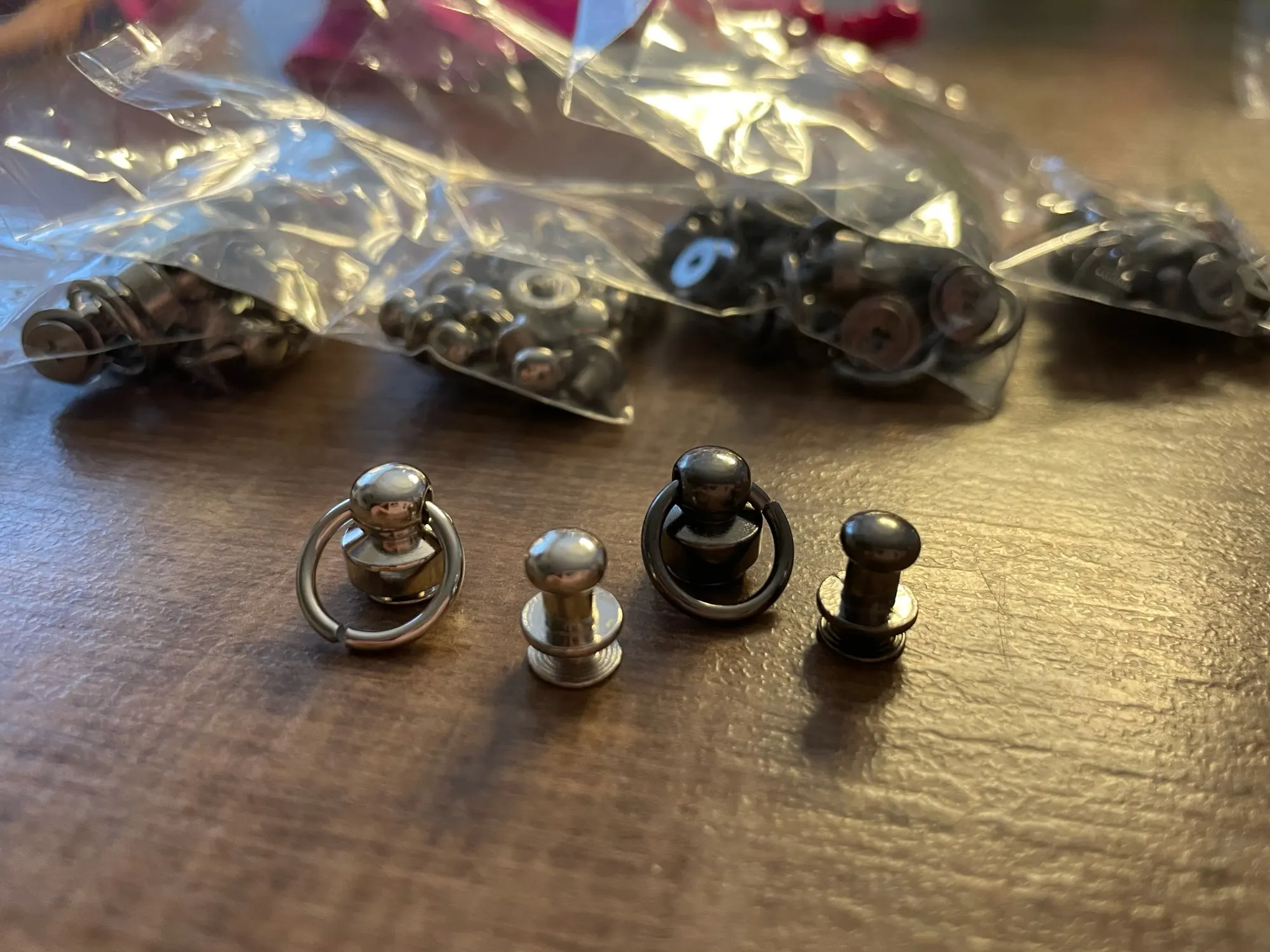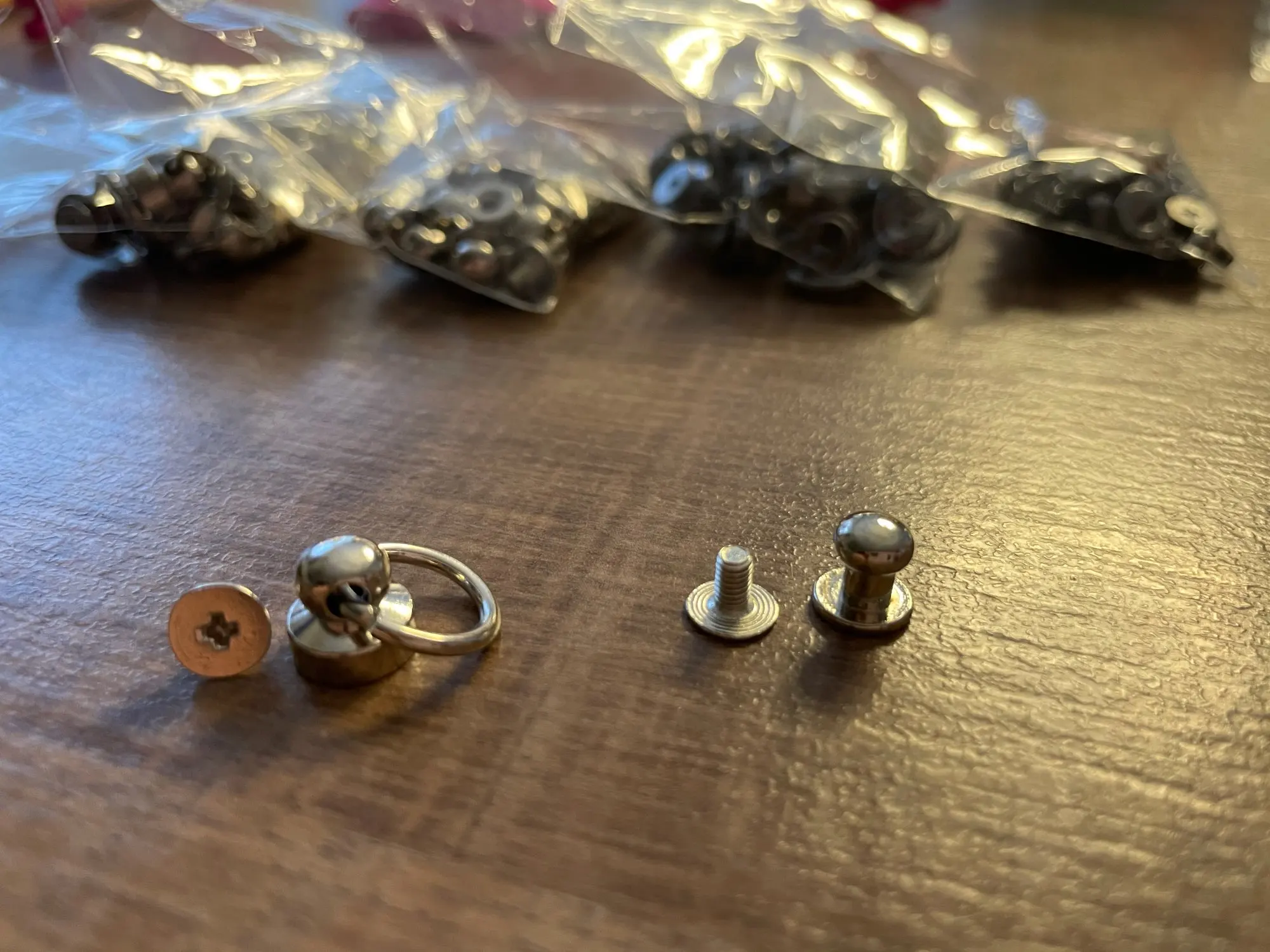 Отличные болты. Глянцевое золото. Аккуратные. Даже лучше, чем были на сумке при покупке. Купила, чтобы обновить фурнитуру. Шуруп ввинчивается в болт не до конца. Рассчитано, что между ними будет минимум 2-3 мм материала.
