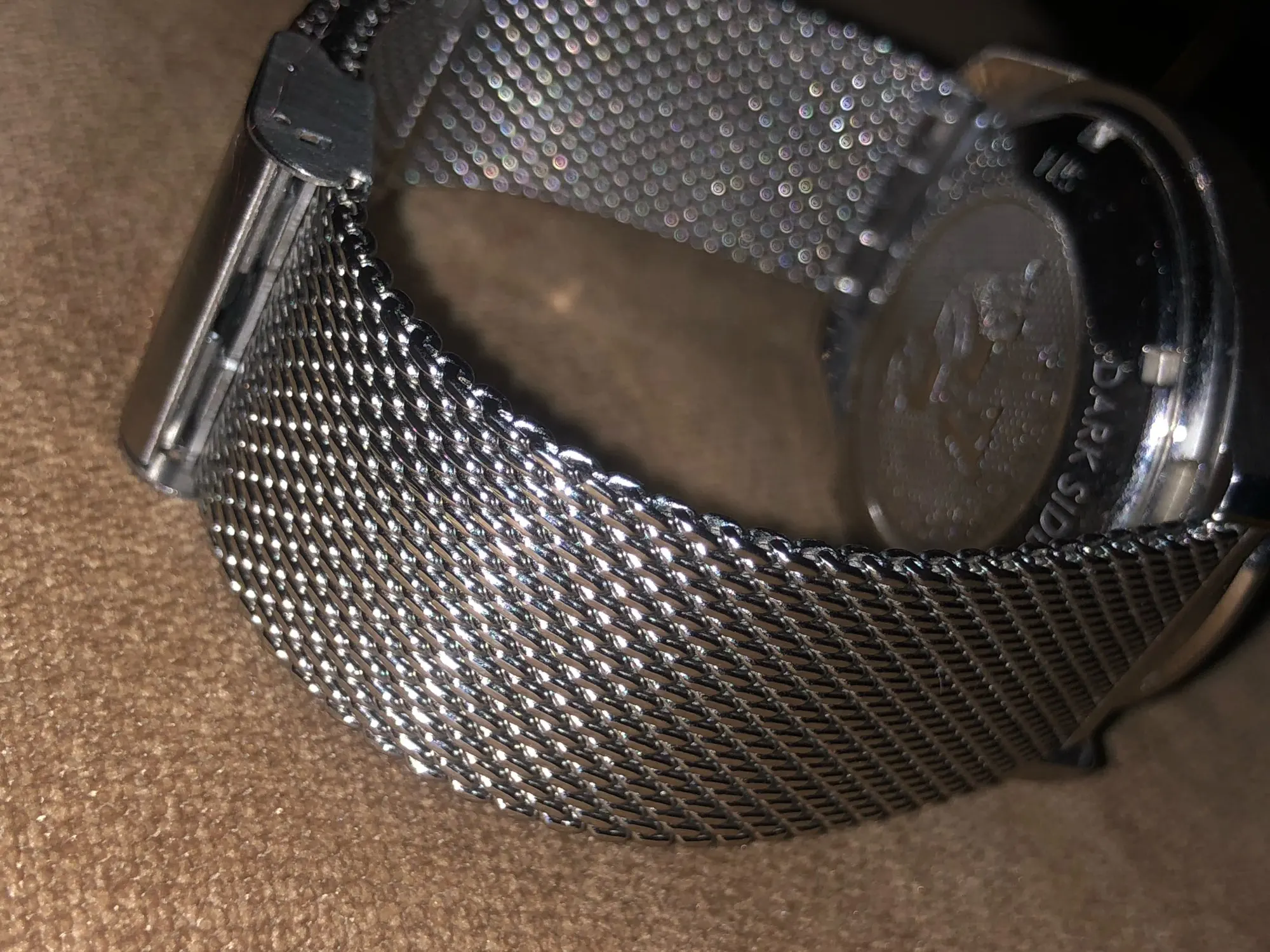 Очень доволен этим серебристым сетчатым браслетом! На самом деле, это очень важно... не хлипкий или тонкий. Чрезвычайно быстрая (бесплатная) доставка-всего 16 дней на мой почтовый ящик (в США).