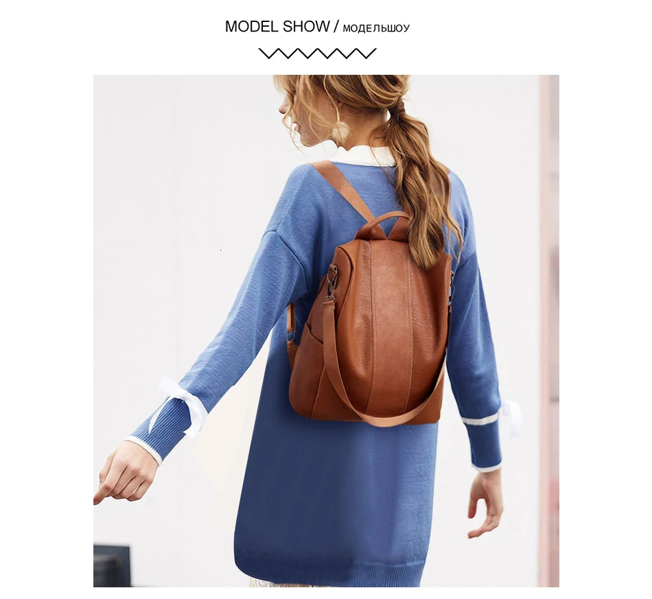Винтажный рюкзак с защитой от кражи, базовый однотонный дорожный ранец на ремне из искусственной кожи, Повседневная вместительная сумка для книг для студентов-подростков