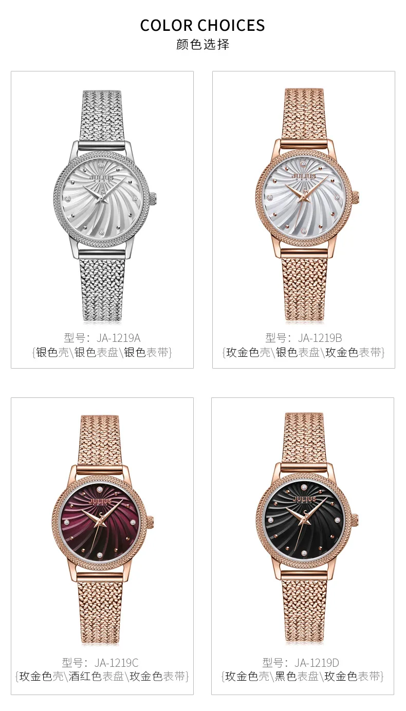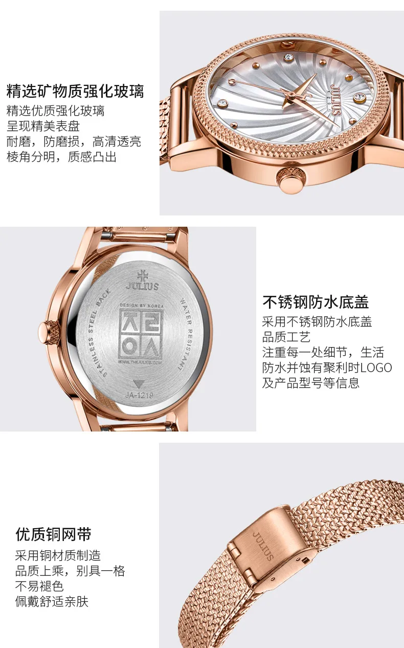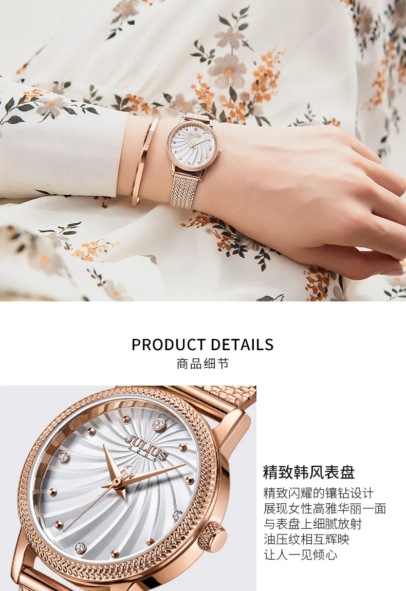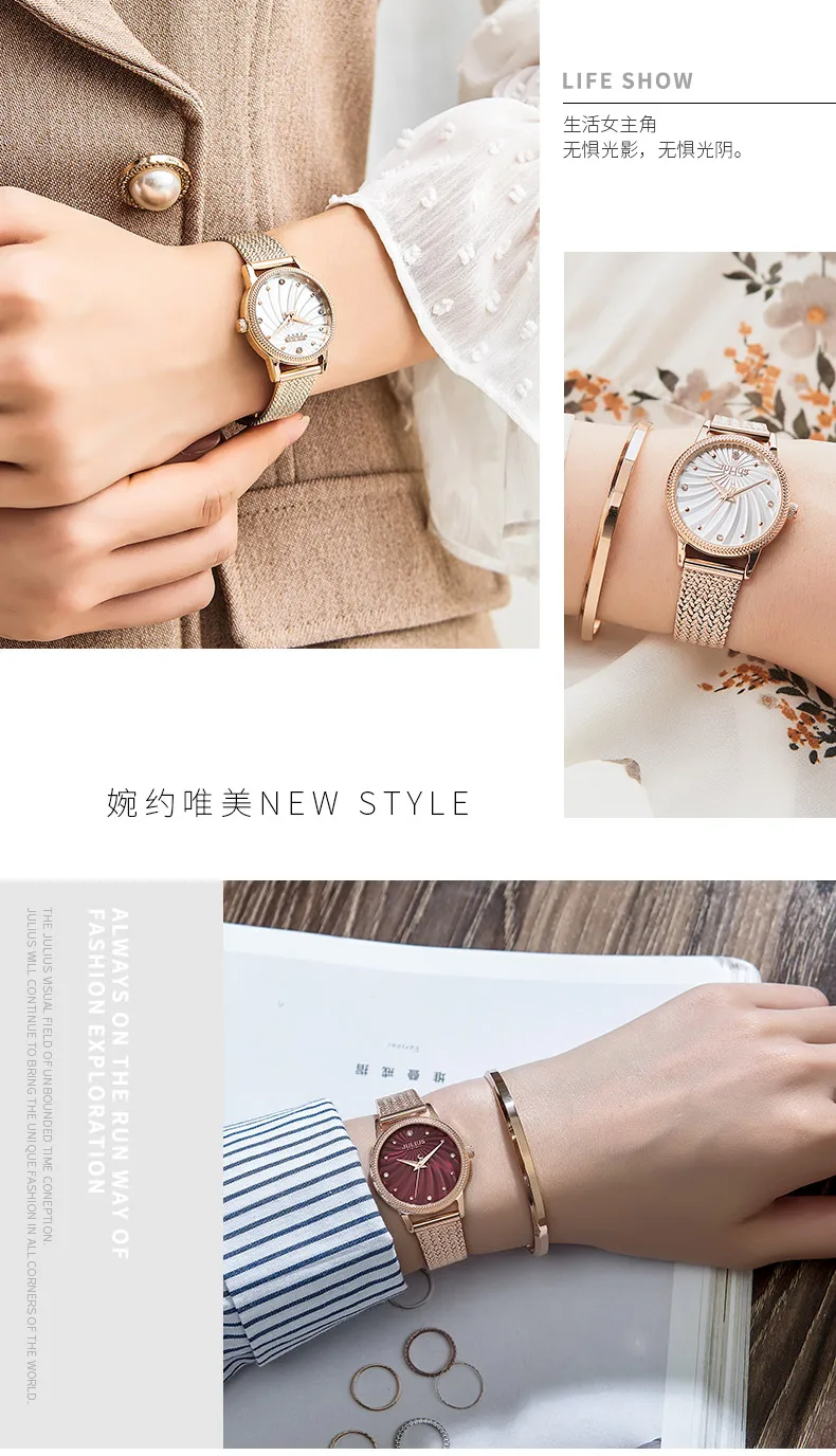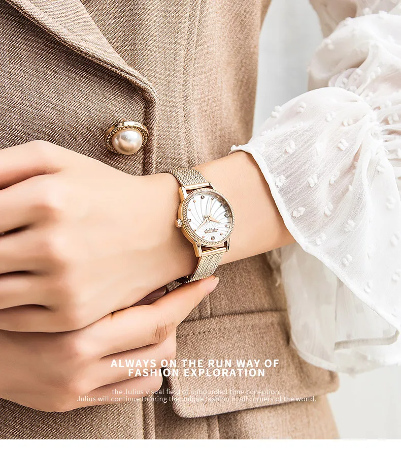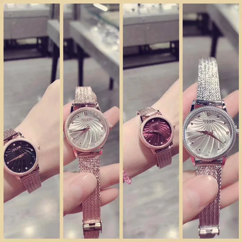 Часы женские кварцевые в японском стиле, элегантные модные часы Стразы Julius, браслет-цепочка для платья, Подарочная коробка на день рождения для девушек