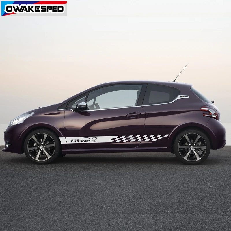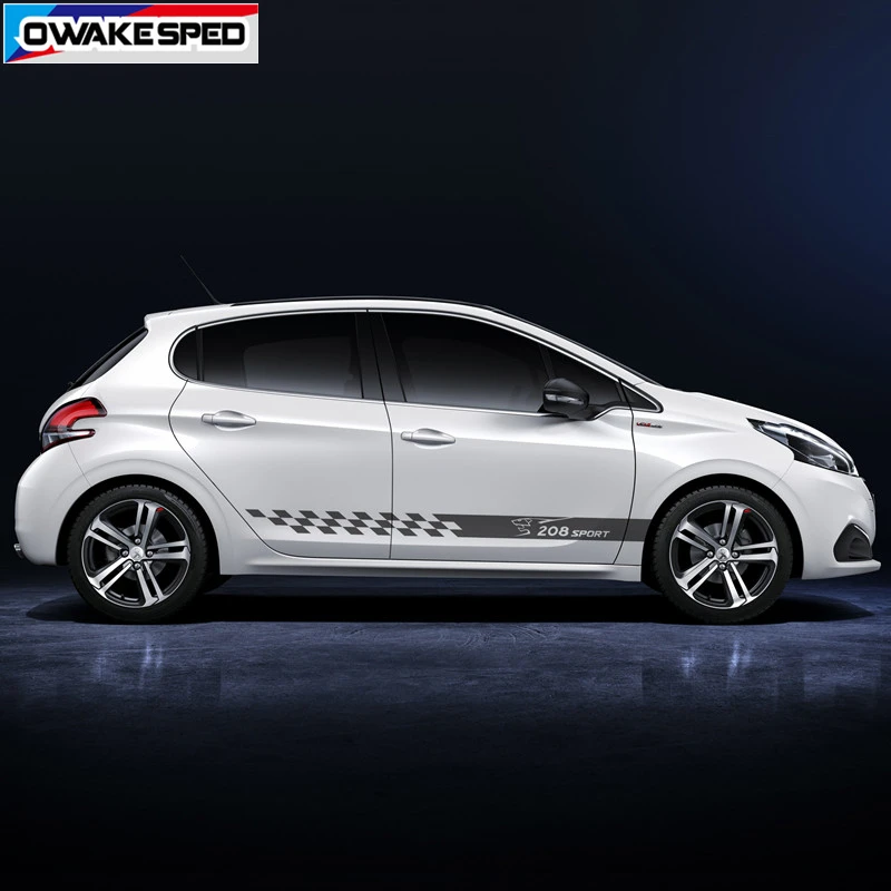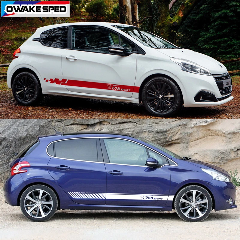 Для PEUGEOT 208 3-5 дверные спортивные полосы автомобильные дверные юбки наклейки с обеих сторон Декоративные наклейки для кузова автомобиля