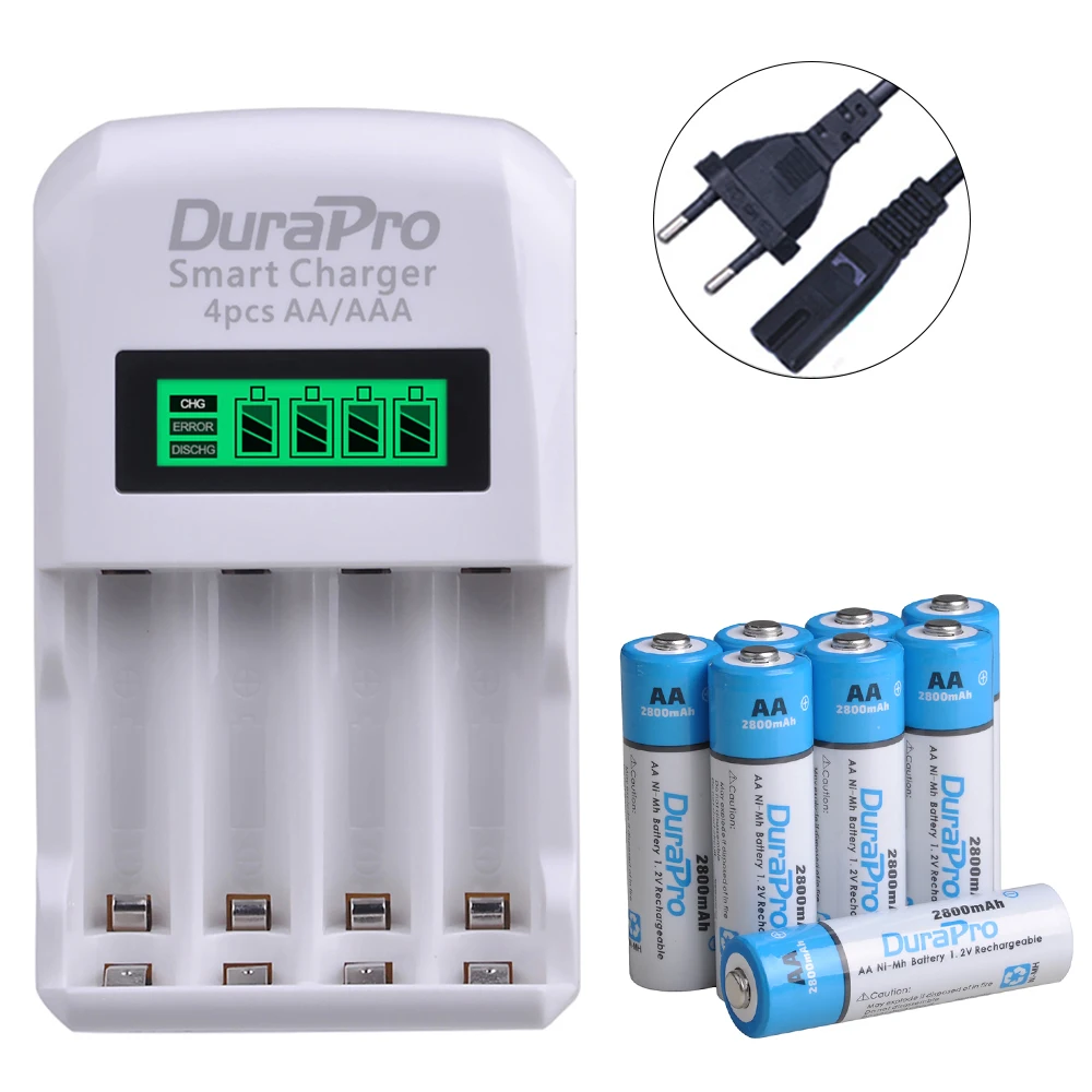 2800 мАч AA, AAA ni-mh аккумуляторная батарея + LCD 4 слота зарядное устройство с вилкой EUUSUK для калькулятора mp3-плеер, пульт дистанционного управления, игрушки