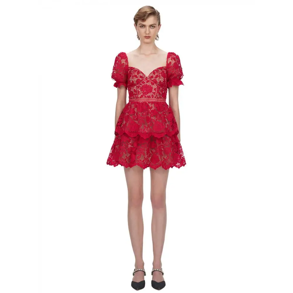 Женское вечернее мини-платье, красное, белое кружевное платье с открытой спиной, с коротким рукавом, для зимы, 2020