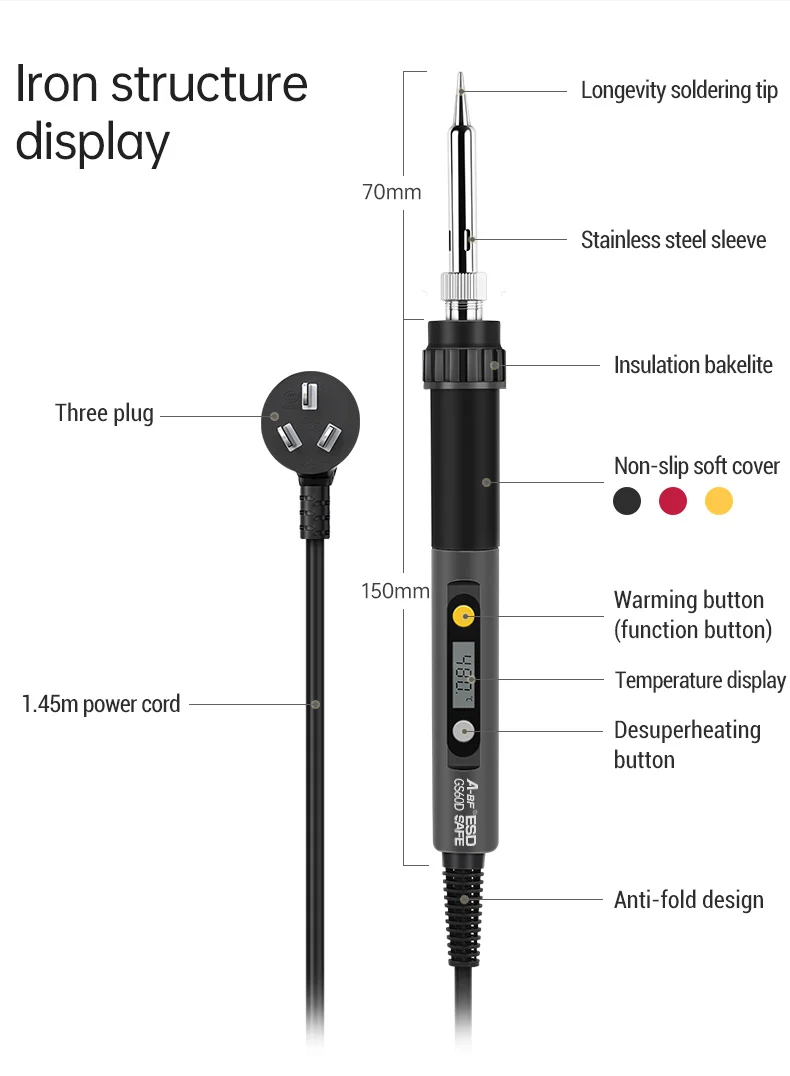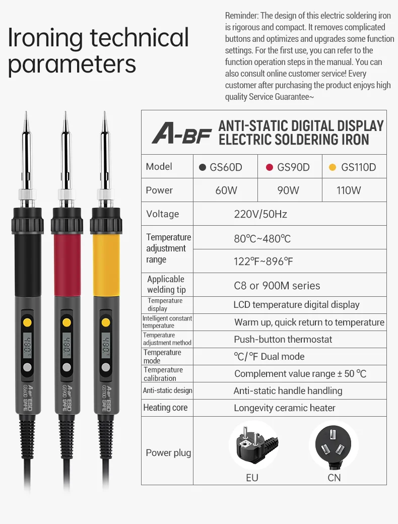 Паяльник GS90D, A-BF в, с регулируемой температурой, ЖК-дисплеем, с жалами для пайки