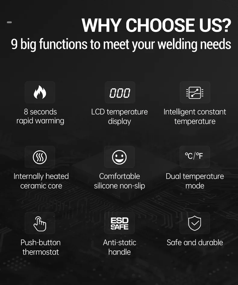 Ожидаемо отличный универсальный паяльник. Взял взамен «игрушечного» никудышного TS-100, которым даже планарный мосфет с платы не снять, не прогревает. Этот универсальный-и выбор жал огромный, и легко прогревает и паяется все, от толстых проводов и широких дорожек, до мелких smd. Хотя надо было брать GS110 все же. Жала в комплекте-мусор, кривые, как топором рубленные, лучше брать без них и докупить качественные, благо, недорого.