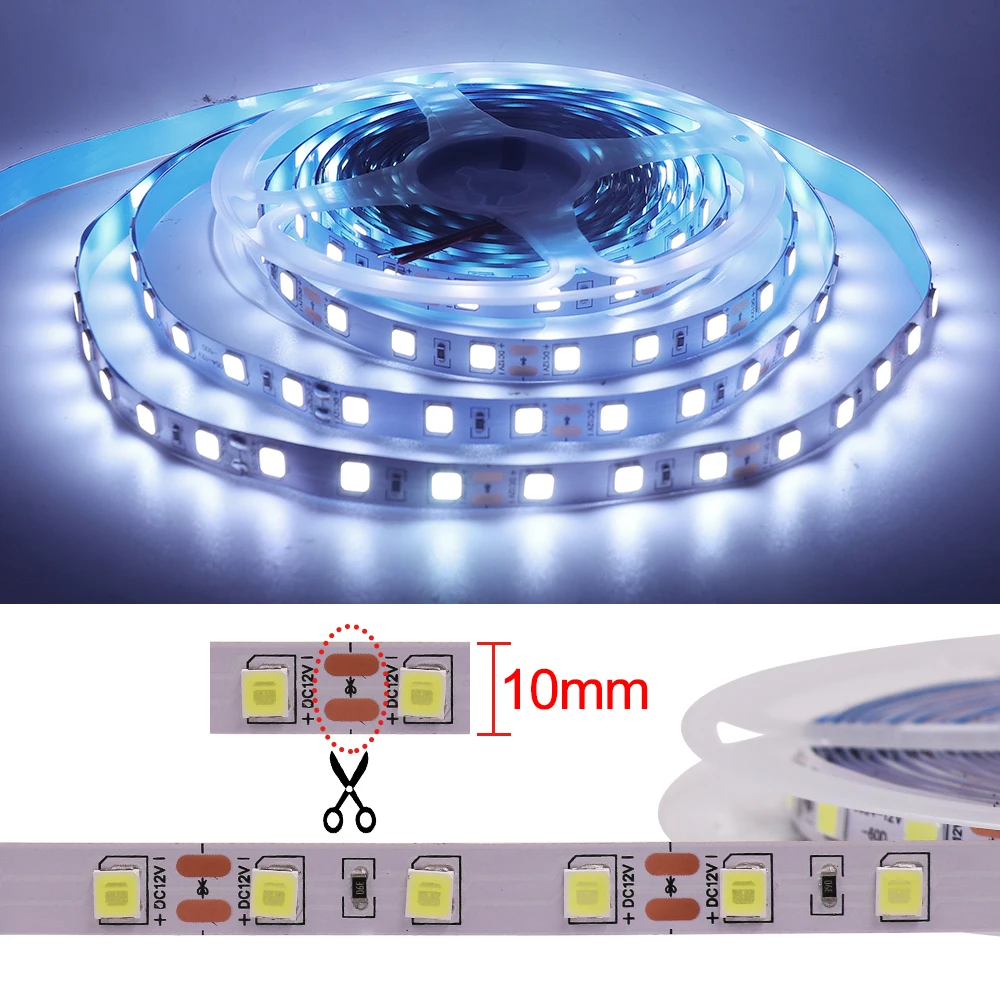 Лента светодиодная, 5 м, 2835, 5050, 5054, 120, 240 светодиодовм, 12 В постоянного тока
