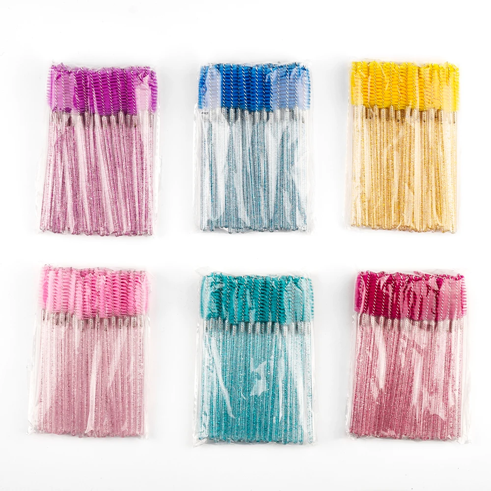 50 шт блестящие одноразовые ресницы Кристалл тушь для ресниц палочка аппликатор ложки для бровей алмазные косметические ресницы кисти инструмент для макияжа
