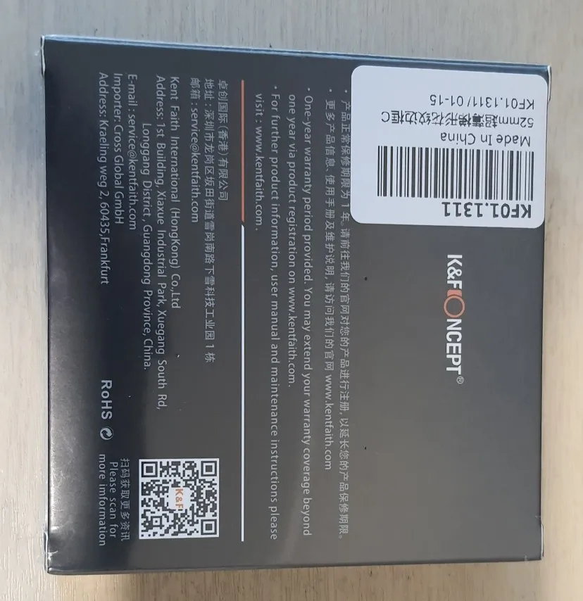 K & F CPL фильтры 52 мм, полученные в идеальной запечатанной коробке Если бы продавец мог отправить мне по 52 мм/58 мм по одному, то он был бы идеальным, если бы он отклонил мой запрос, несмотря на мой предыдущий запрос. В любом случае 52 мм-это общий размер для большинства объективов, поэтому l может использовать его на другом объективе.