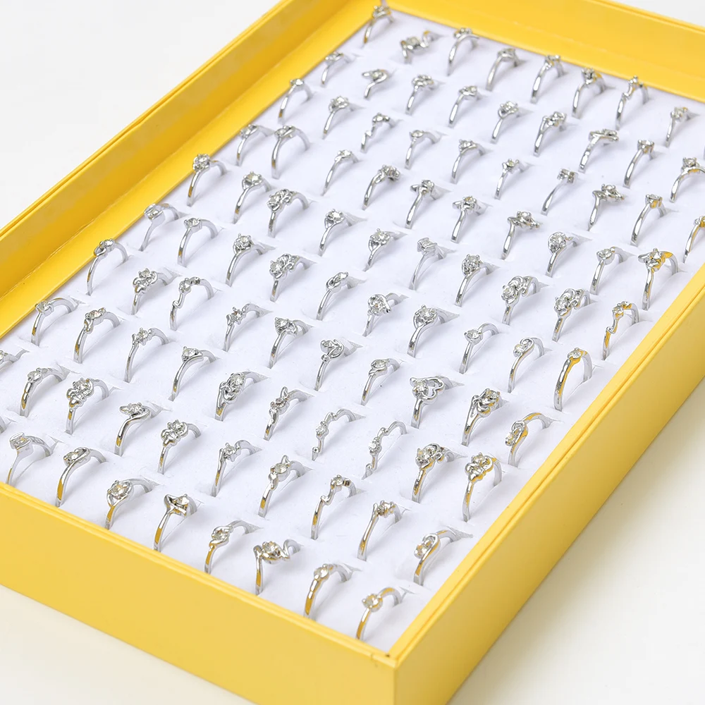 Женские кольца с кристаллами, 100 шт.лот, металлические украшения для пальцев, размер от 6 до 9, подарок для свадебной вечеринки шт.