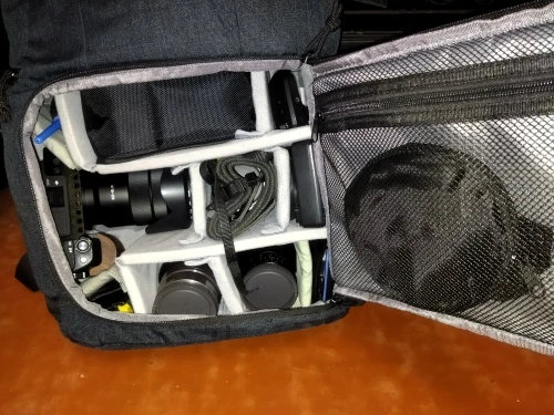 рюкзак, не плохой, но по всем видно что бюджетны й, не сравнится с ловепро или тинктанк, ни по цене ни по качеству. Места в нем полно, есть со стороны спины отдел для планшета или лед панели, для меня это вашный пункт. Молнии качественные.