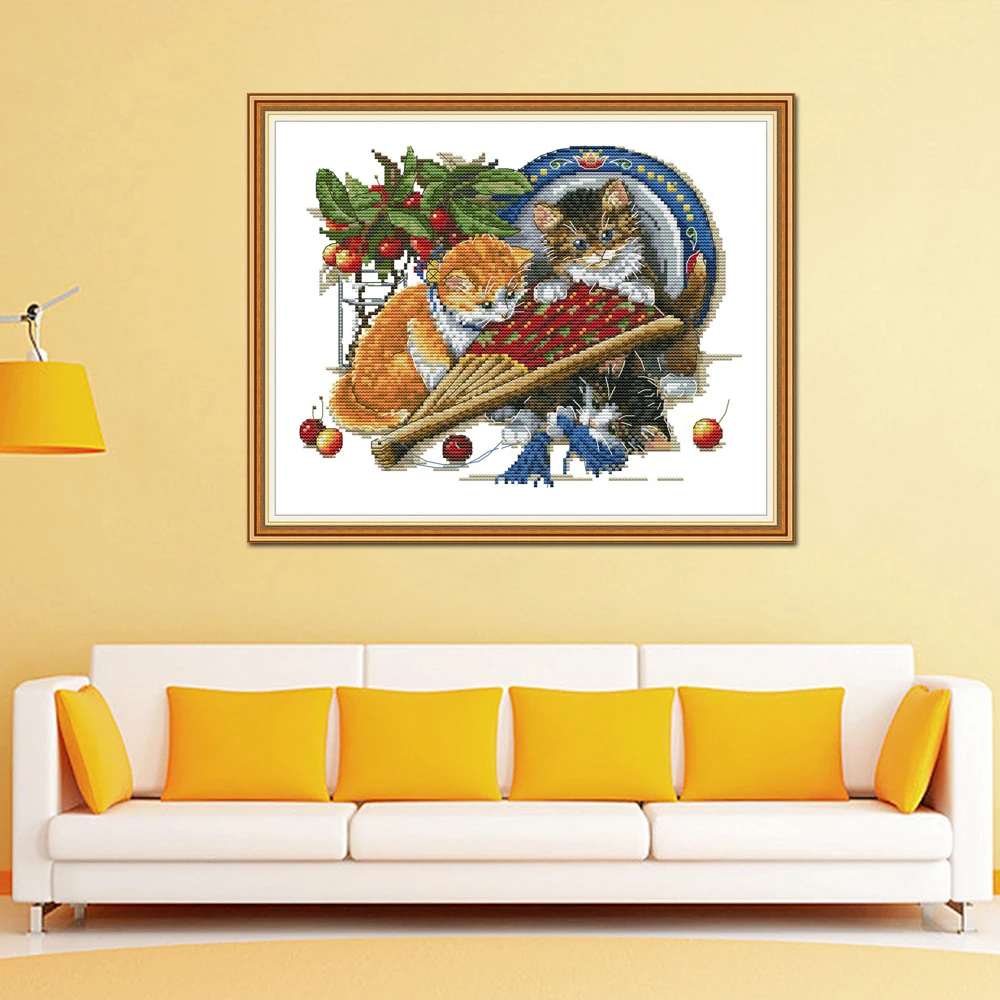 Joy Sunday коты и вееры вышивка крестиком DA324 14CT 11CT Счетный штампованный домашний декор котята и веера наборы крестиков