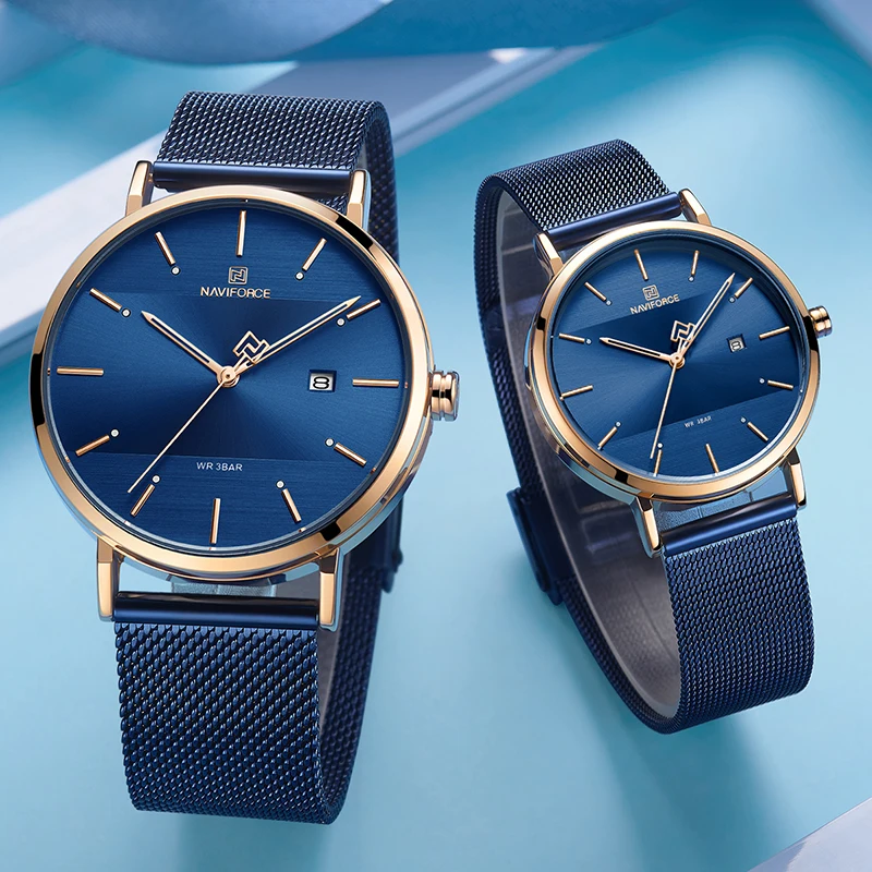 Часы наручные NAVIFORCE мужскиеженские кварцевые, люксовые брендовые деловые простые, набор водонепроницаемых для пар