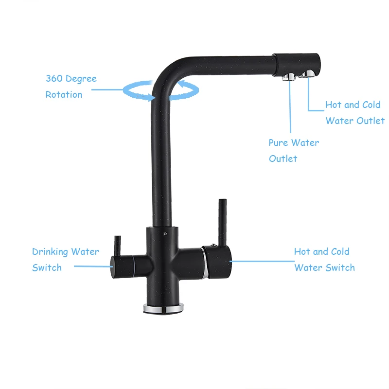 Смеситель питьевой воды Suguword, Черный кран с фильтром, для горячей и холодной воды, для раковины сосуда