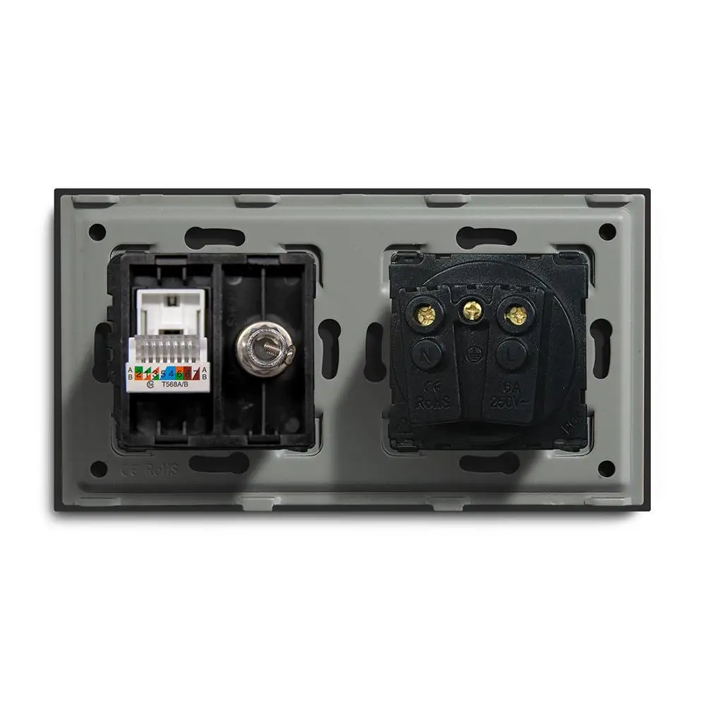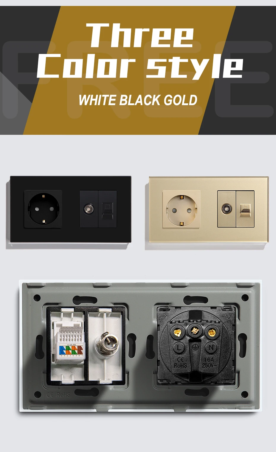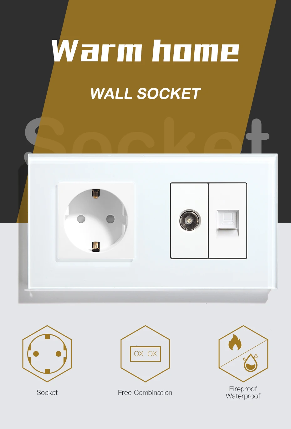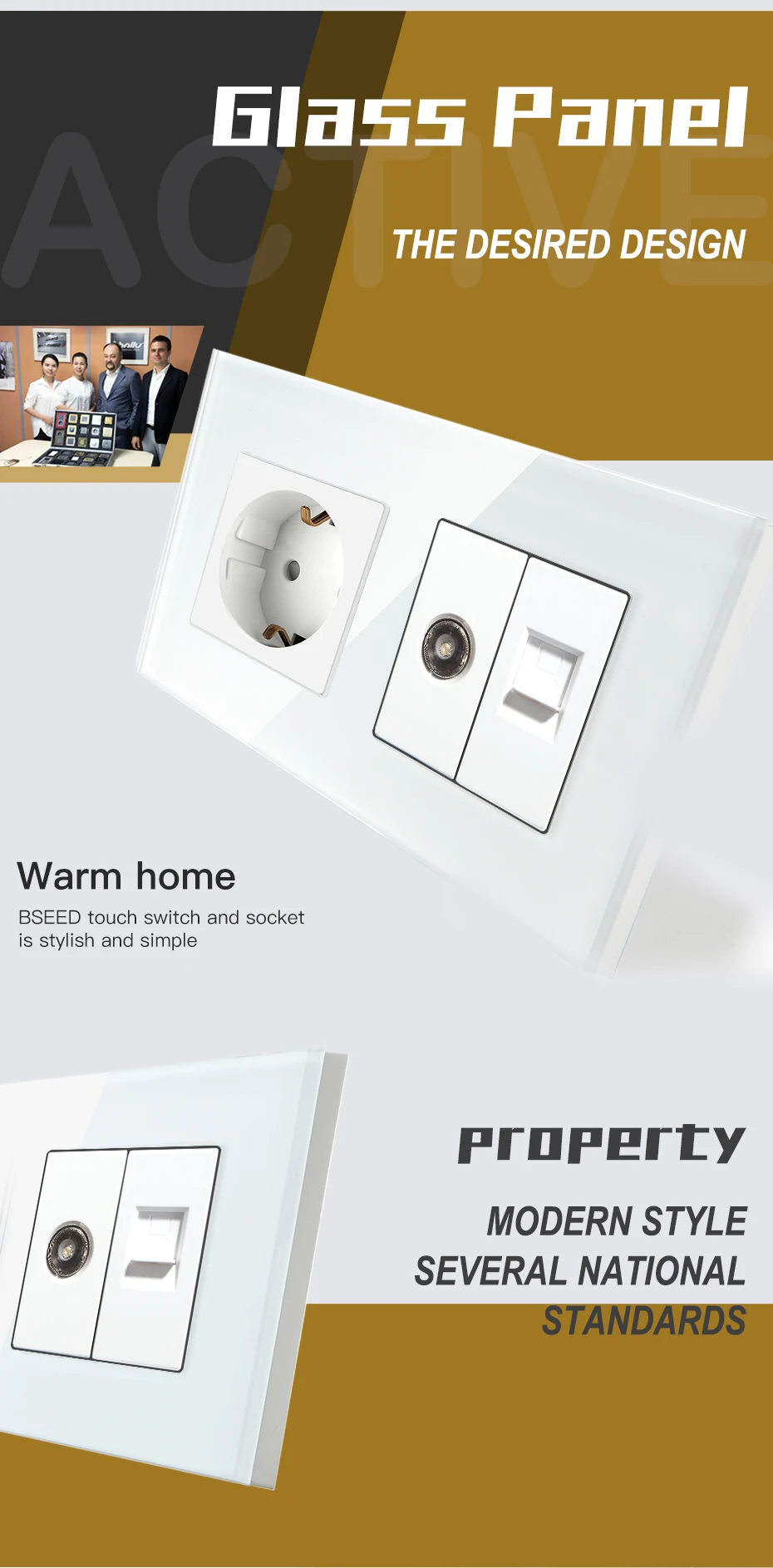 BSEED настенная розетка стандарта ЕС TV PC с розеткой европейского стандарта, прозрачная стеклянная панель, белый, черный, золотой, европейский стандарт