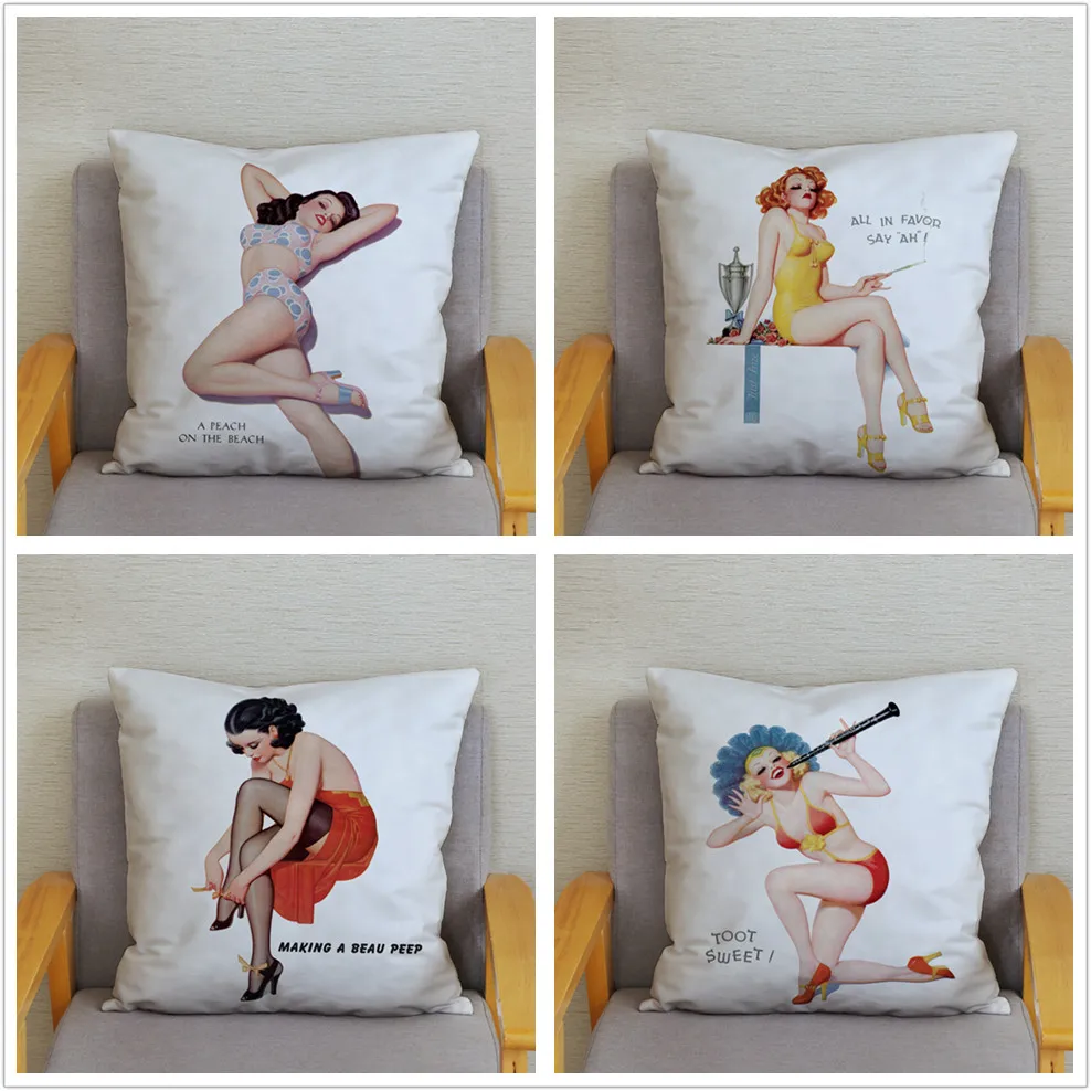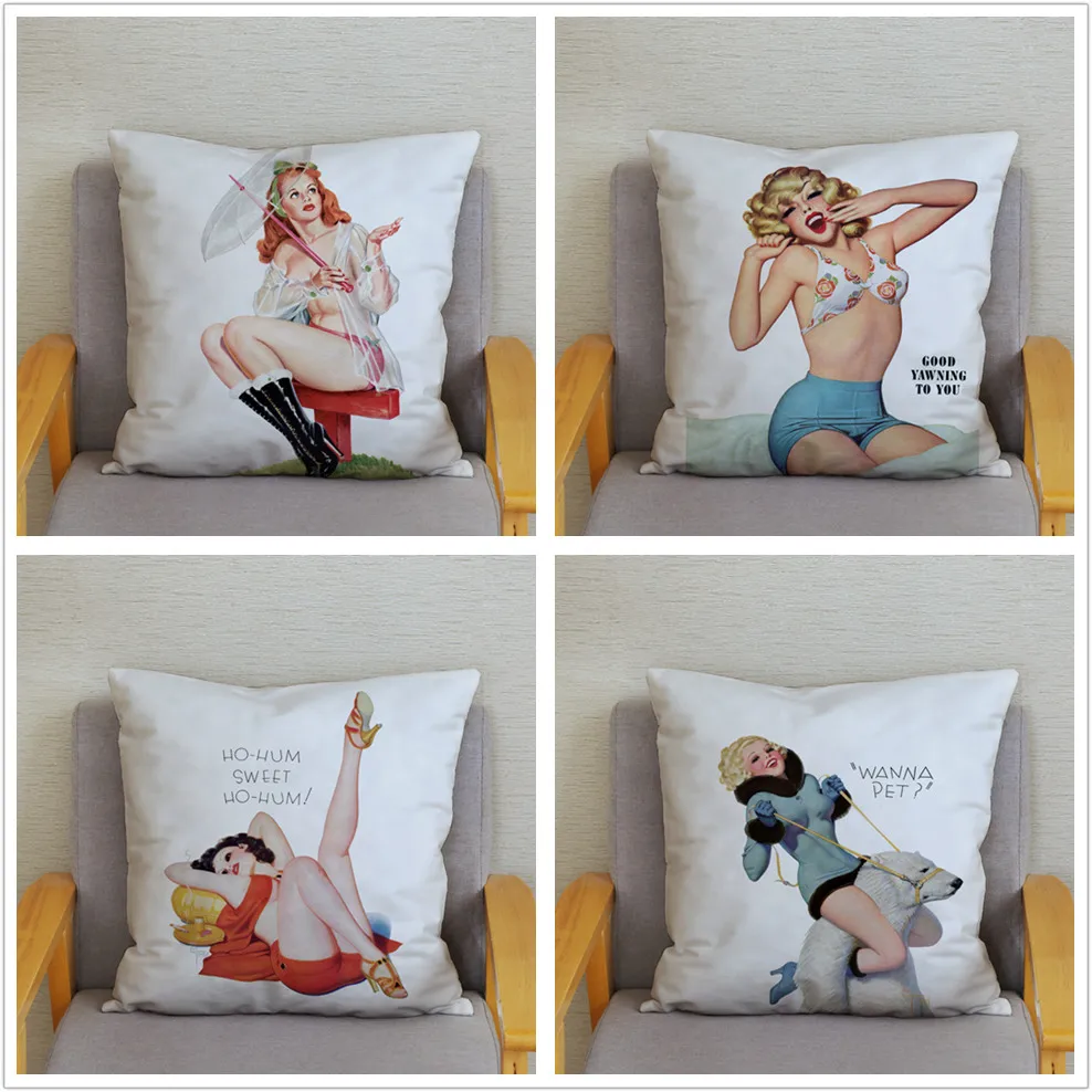 Европейская ретро наволочка для подушки, сексуальная женская наволочка для подушки с принтом, супер мягкая короткая плюшевая подушка, чехол для подушки