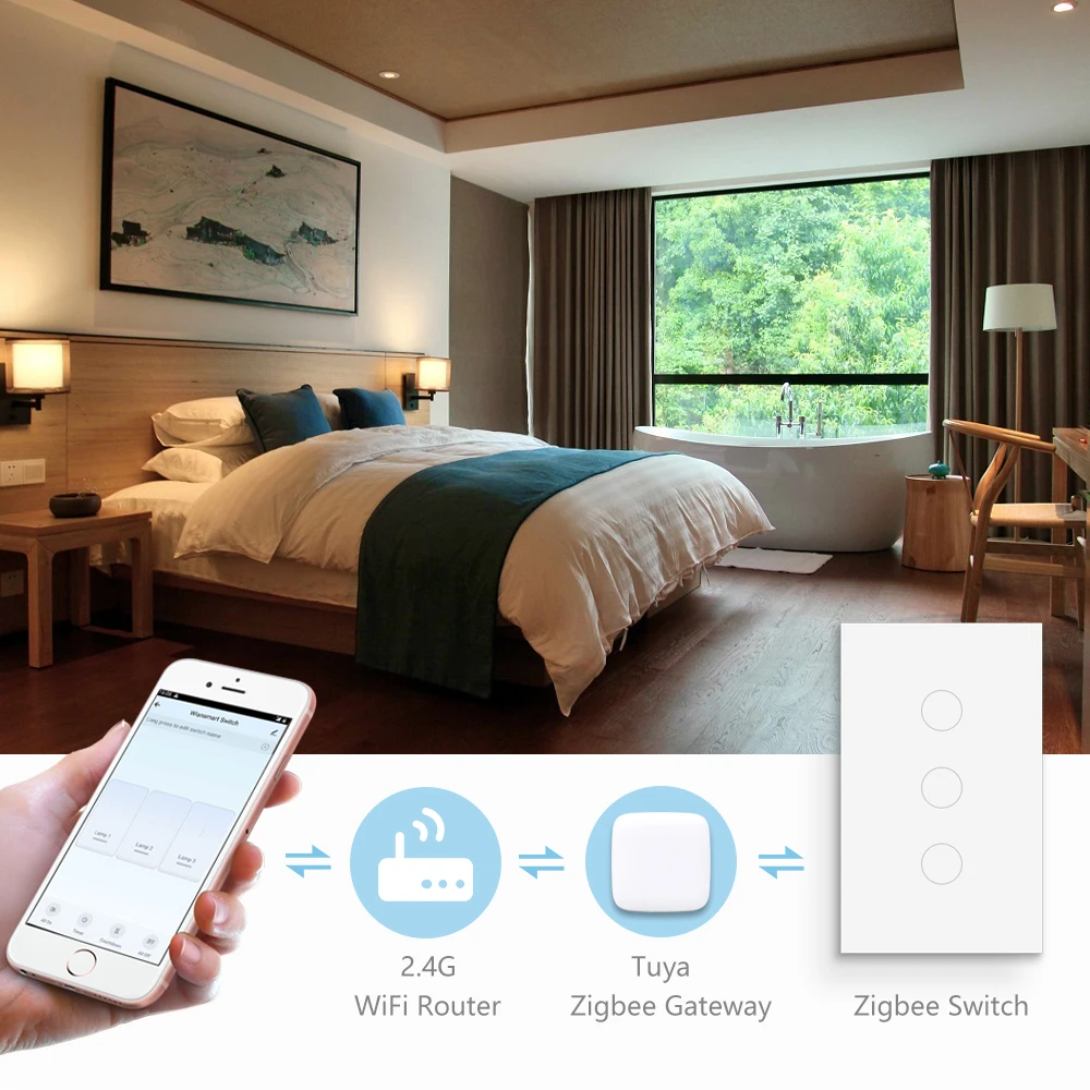 Настенный выключатель zigbee находится перед wifi и RF-переключателем.1. Переключатель Zigbee не занимает пропускную способность wifi роутера, слишком много устройств WiFi вызывают перегрузку сети.2. Переключатель Zigbee имеет отзывы о состоянии вашего приложения, переключатель RF не имеет.3. Рабочий способ zigbee, как соты, переключатель zigbee может подключиться к ближайшему устройству zigbee для работы, Отзывы действительно быстрые.Таким образом, рабочее расстояние zigbee находится перед другим способом работы сигнала.Настоятельно рекомендуем!