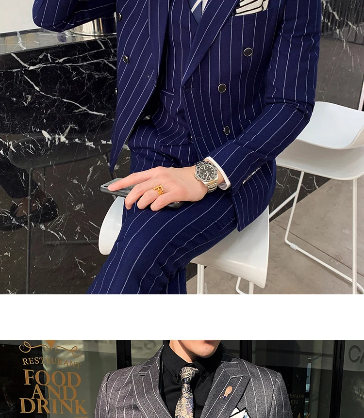 Новое поступление, деловой Повседневный облегающий костюм в полоску, костюм-тройка