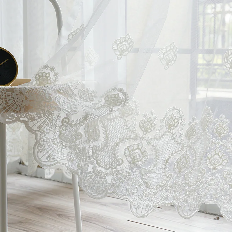 Европейские вышитые белые кружевные тюлевые прозрачные Занавески Из вуали для гостиной, экрана окна, спальни, раздвижные двери, тюлевые занавески