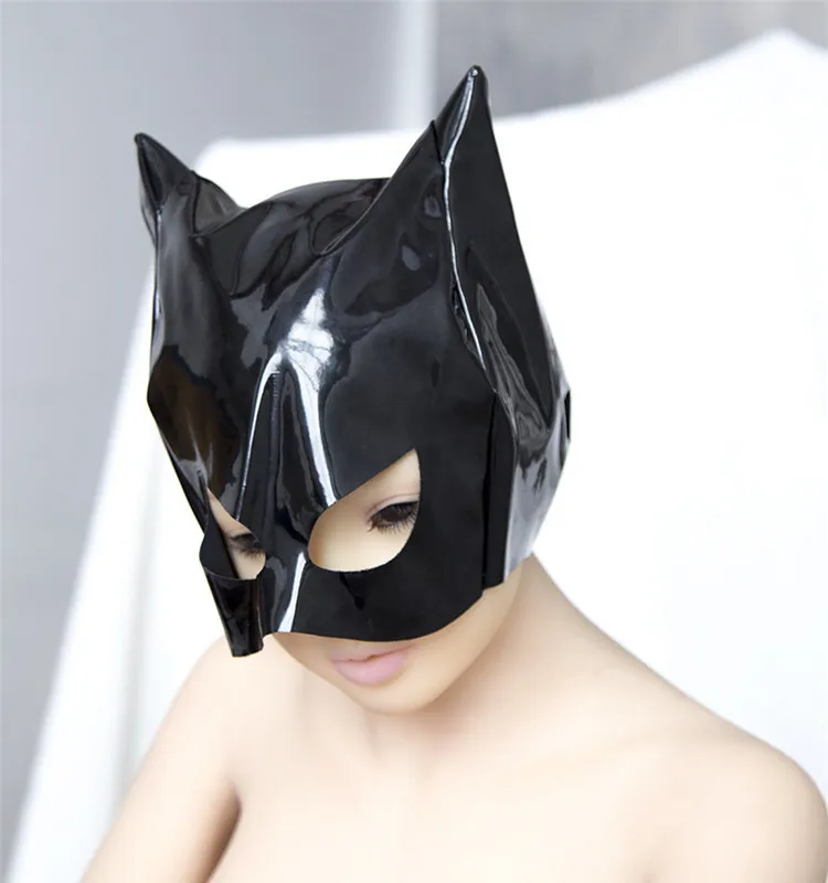 Женская латексная маска кошки в стиле аниме для косплея, соблазнительная маска на половину лица из кожи, фетиш, с капюшоном, костюмы для косплея на Хэллоуин