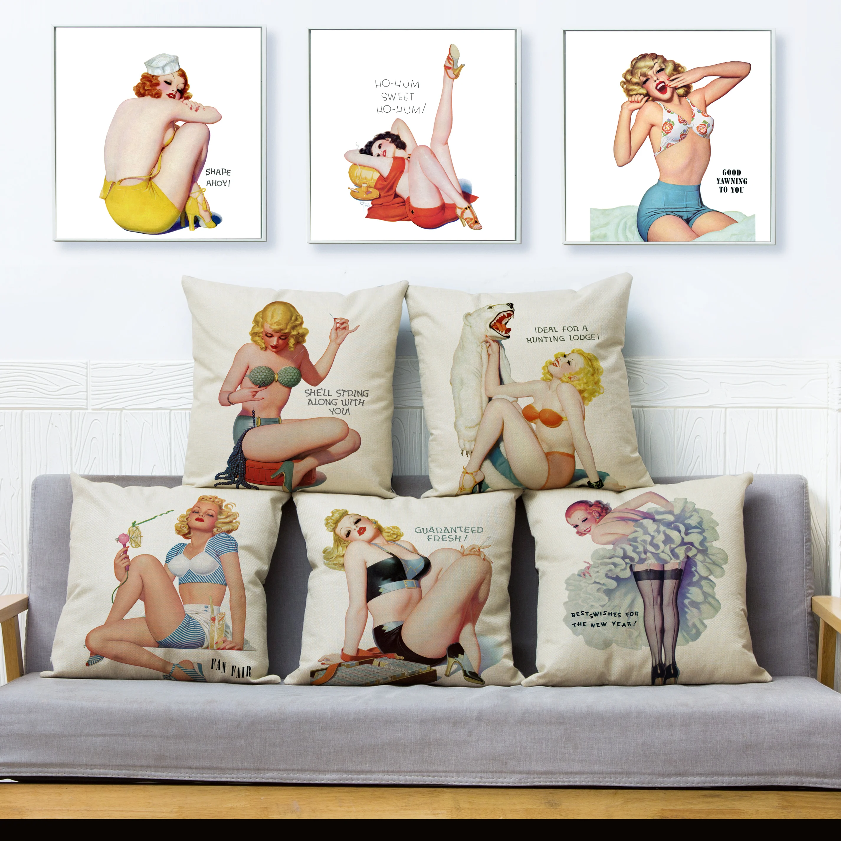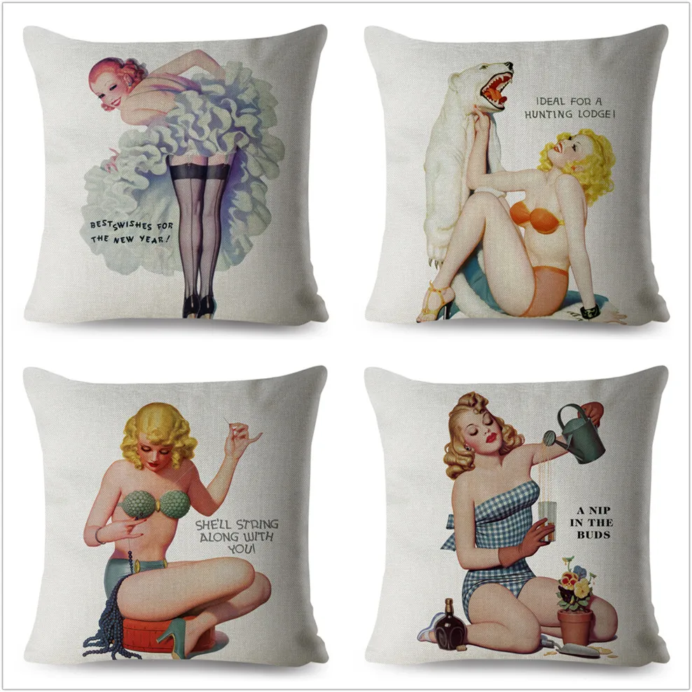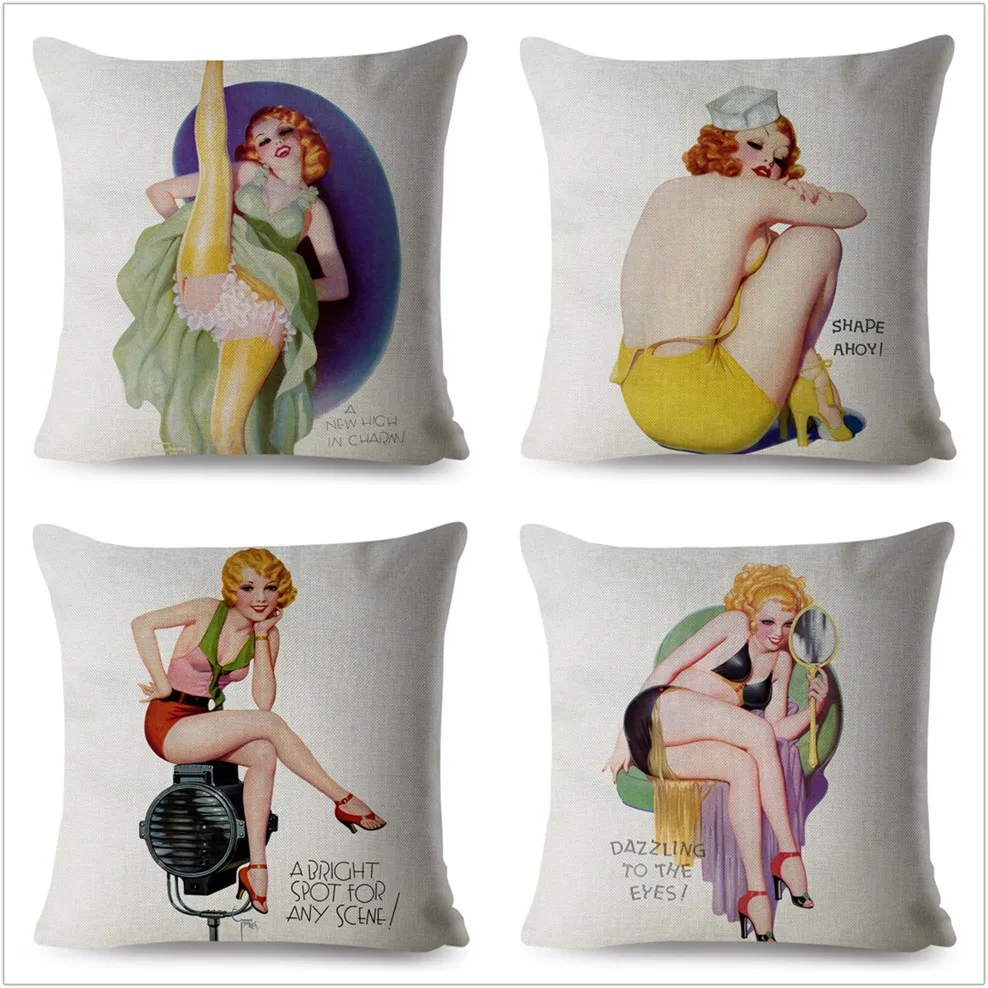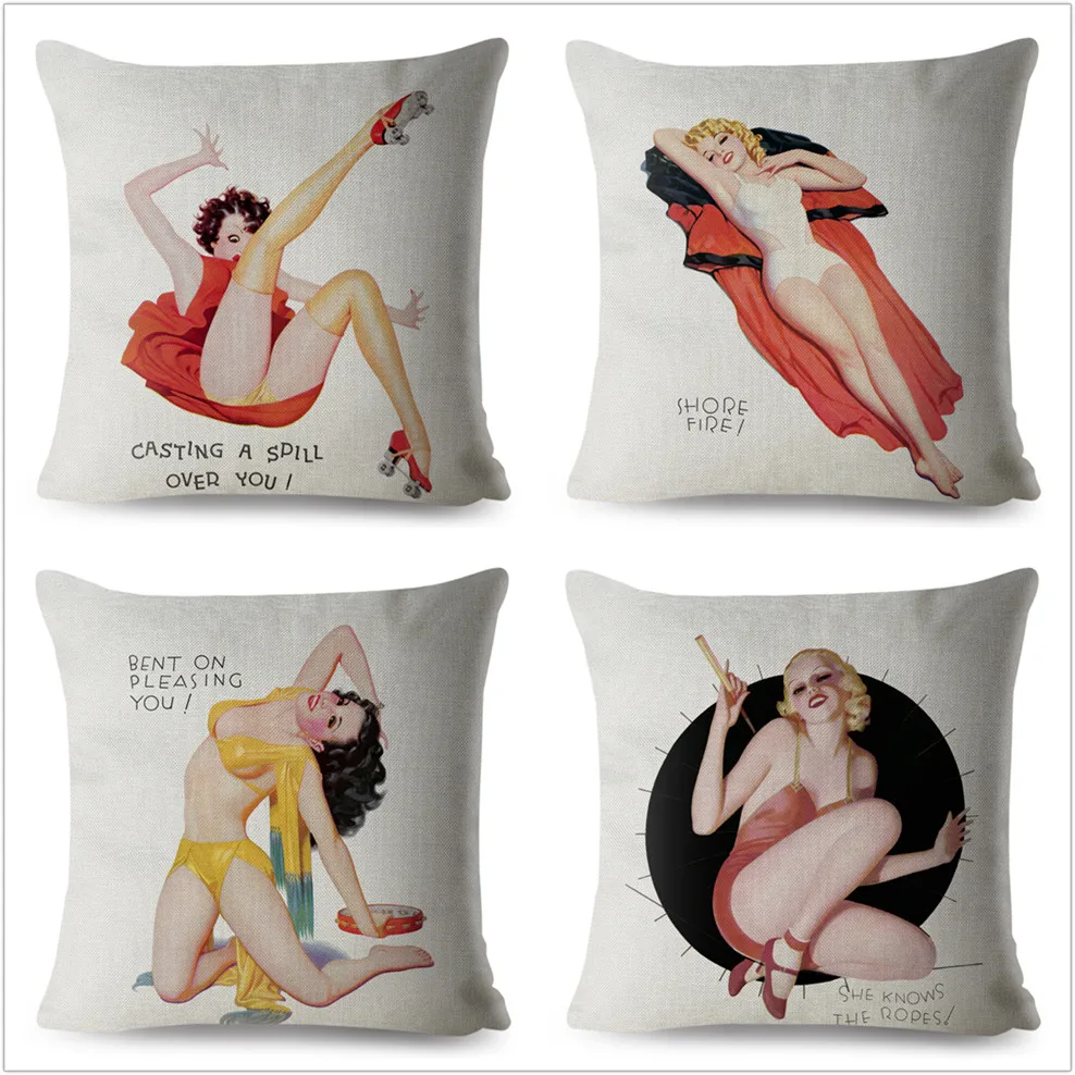 Европейская подушка в стиле ретро чехол сексуальные женские Девушки чехол для подушки с принтом бежевые льняные подушки Чехлы диван наволочка для домашнего декора Чехол 45*45 см