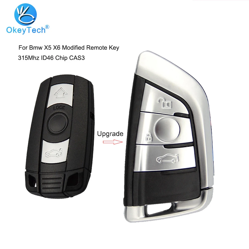 Чехол для ключей OkeyTech для Bmw X5 X6, модифицированный дистанционный ключ CAS3, передатчик без ключа 315 МГц с чипом ID46, пустой нож с 3 кнопками