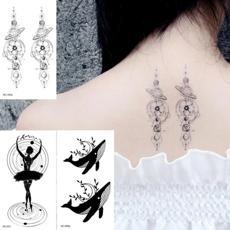 1 шт. с геометрическим рисунком планета наклейки на балетную тему черная Временная наклейка-татуировка, Водонепроницаемый черный TriangleTattoos Body Arm Art фальшивые татуировки