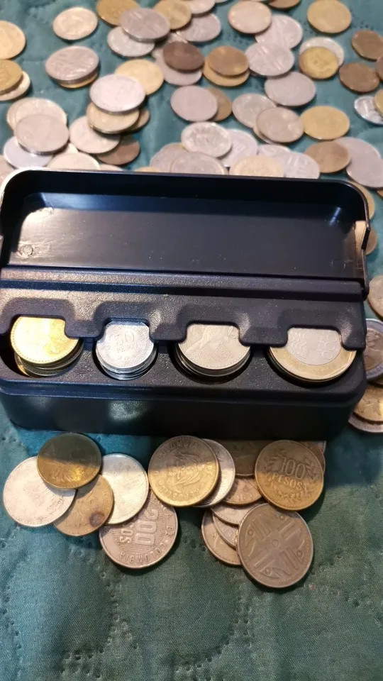 Все монеты Чили подходят, что есть в движении, в самом маленьком видно, что он может вместить монеты по 10 песо, но они не подходят, они для размера 1 веса, так что вам придется занять круг другого размера.
