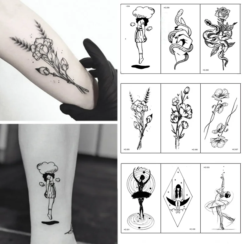 Лидер продаж, 1 шт., популярные балетные черные и белые тату-наклей...