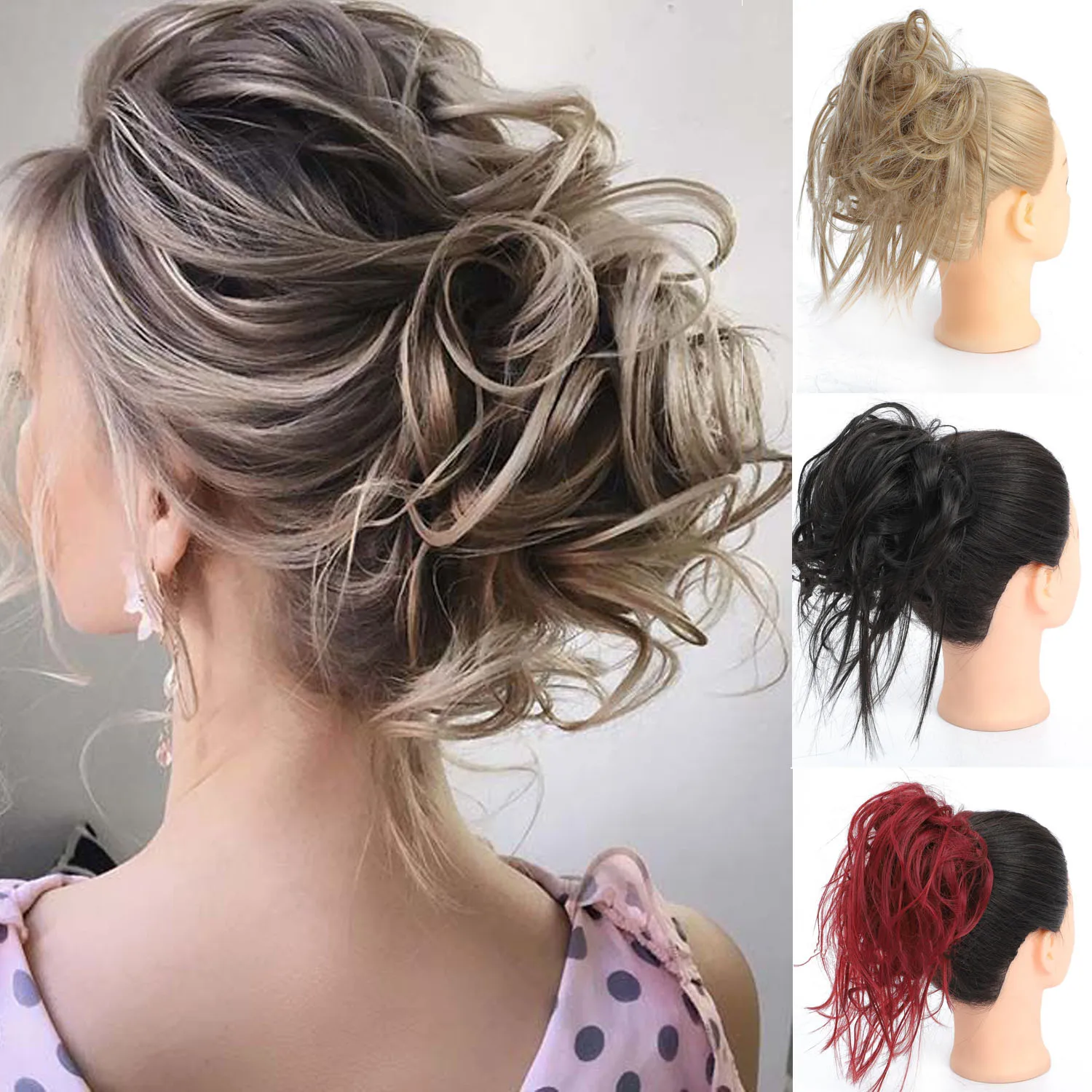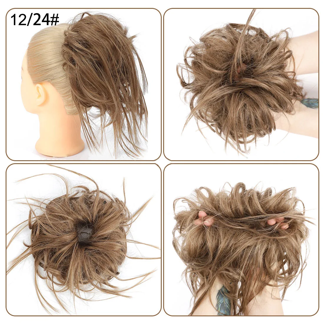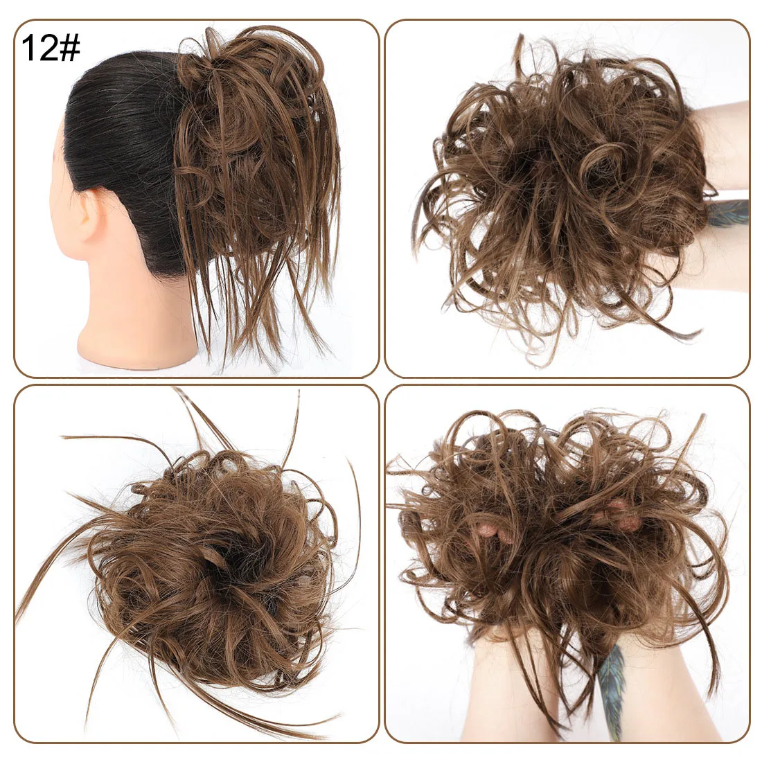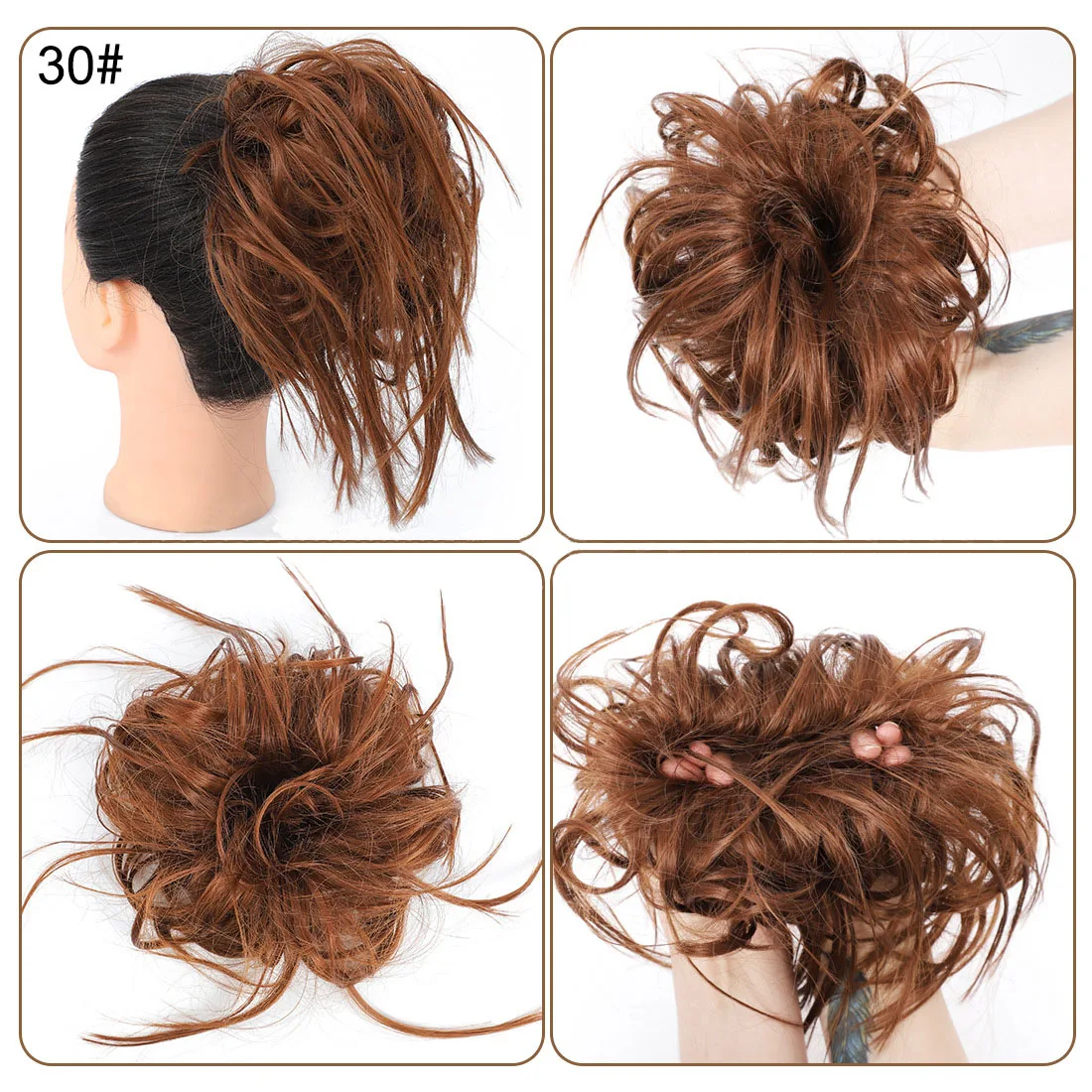 Резинка для волос WEILAI, коричневая, светлая, Пончик-шиньон, эластичная лента для волос, из термостойких синтетических волос