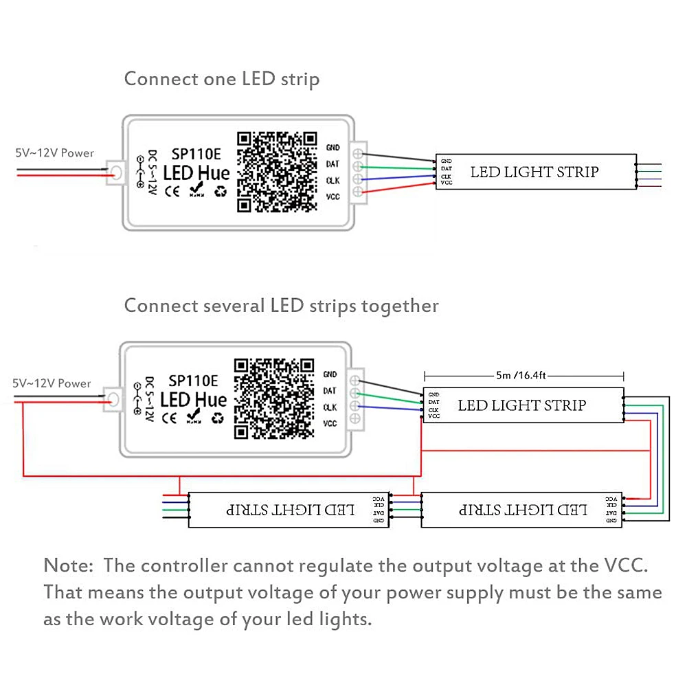 Если вы используете этот контроллер на 4 канала Светодиодные полосы, пожалуйста, вырезайте 4 штифта коннектор для газа и внесения изменений в 3 контактный разъем для того чтобы соединить его, пожалуйста, подключите CLK (проволока проходит по всей самостоятельно.