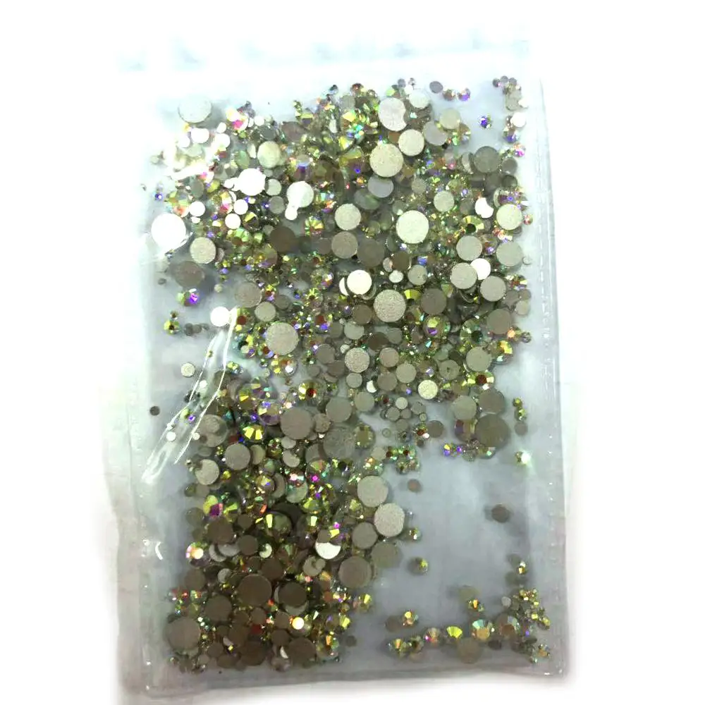2020 смешанные размеры, разные цвета, 1000 ярких кристаллов, без горячей фиксации, Стразы для ногтей, 3D украшение для ногтей