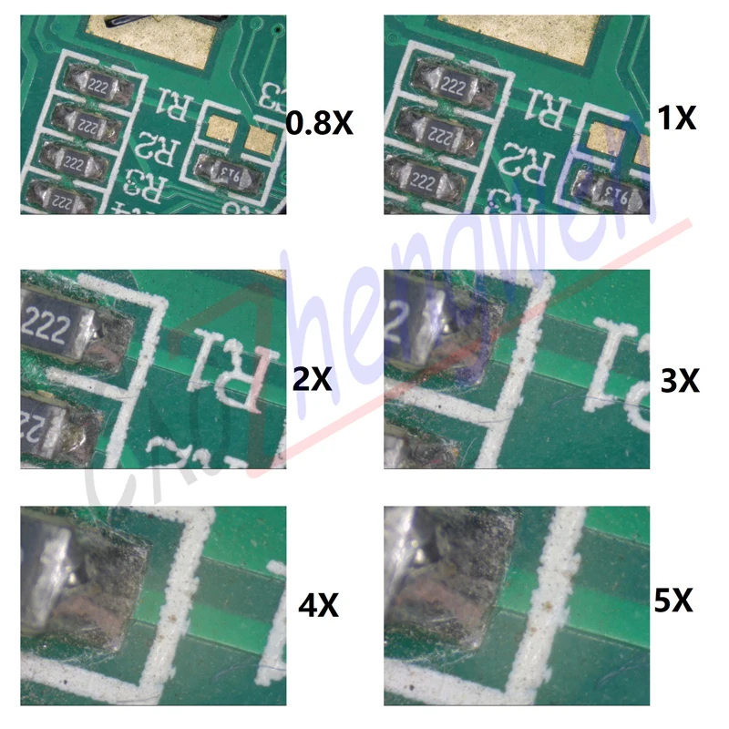 Стандартное Увеличение масштаба 8X-50X с увеличением 1:6.3. Стандартное рабочее расстояние составляет 115 мм. С дополнительными целями его можно увеличить до 220 мм