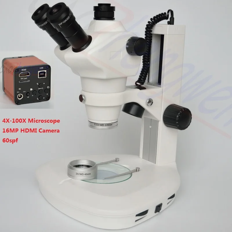 Микроскоп FYSCOPE 38MP HDMI 60SPF с камерой, 4X-100X, Тринокулярный стереомикроскоп с зумом и двумя светодиодными лампами