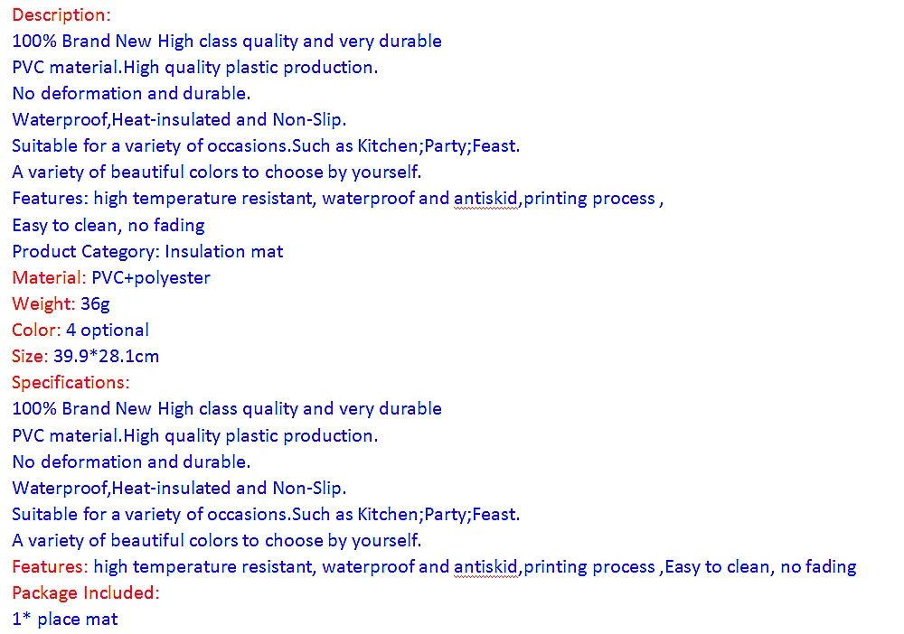 Коврик для обеденного стола из ПВХ, изоляционные водонепроницаемые ...