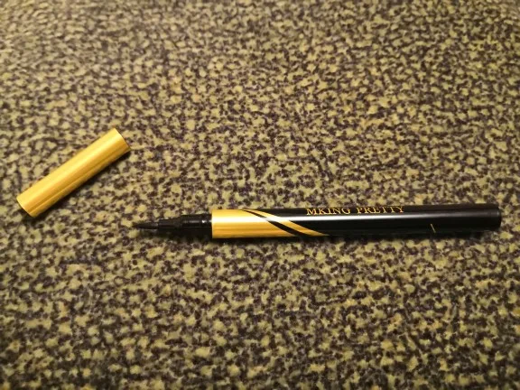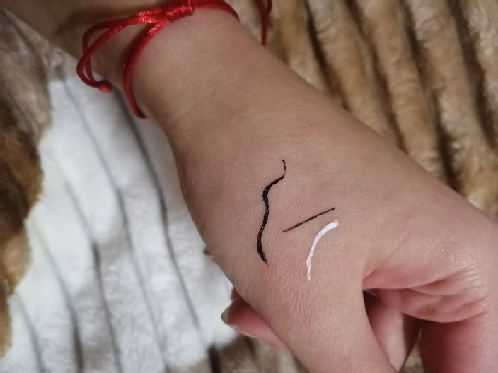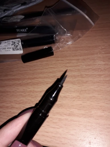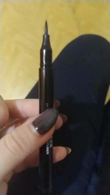Подводка довольно хорошая, тонкий фетровый кончик. На глазах не размазывается, даже если сильно тереть. Попробовала подставить под струю воды- она не смывается, смыдась только с мицеляркой или мылом. Продавец вежлижо отвечал на все мои сообщения, очень довольна.