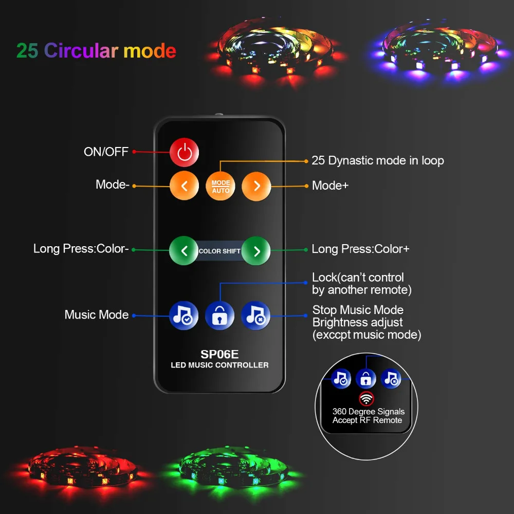 Светодиодная лента WS2812 RGB SMD5050 с пультом дистанционного управления, музыкальный набор с 9 клавишами, USB 5 В, SP106E, синхронизация музыки, цвет мечты
