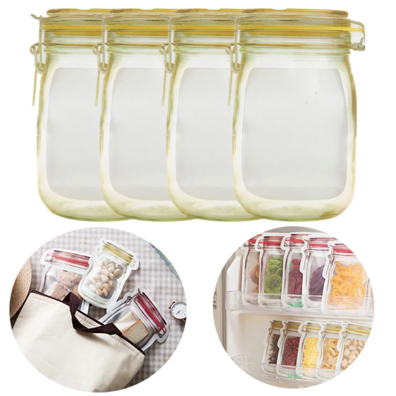 Многоразовые Пакеты Mason Jar на молнии, Герметичная сумка для хран...