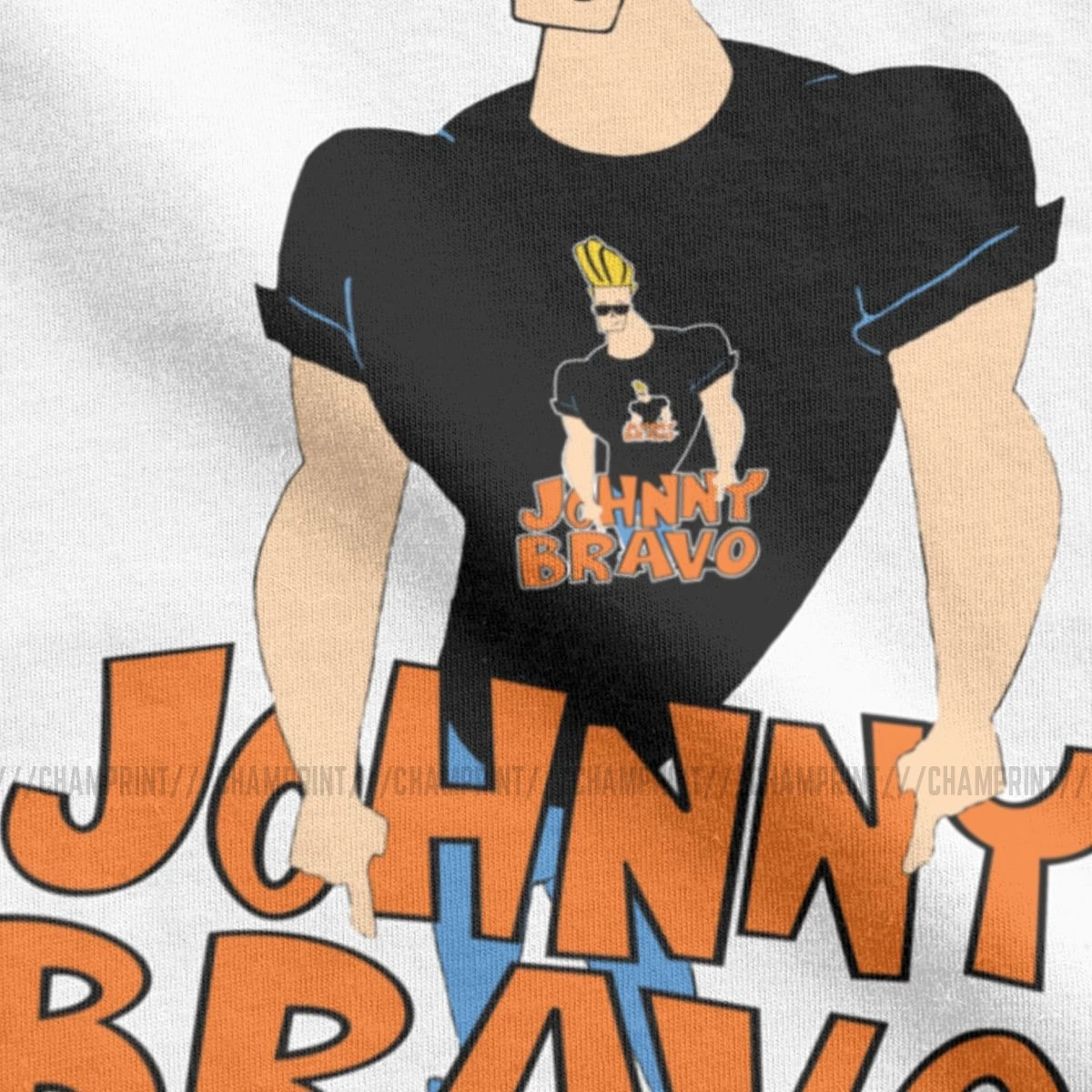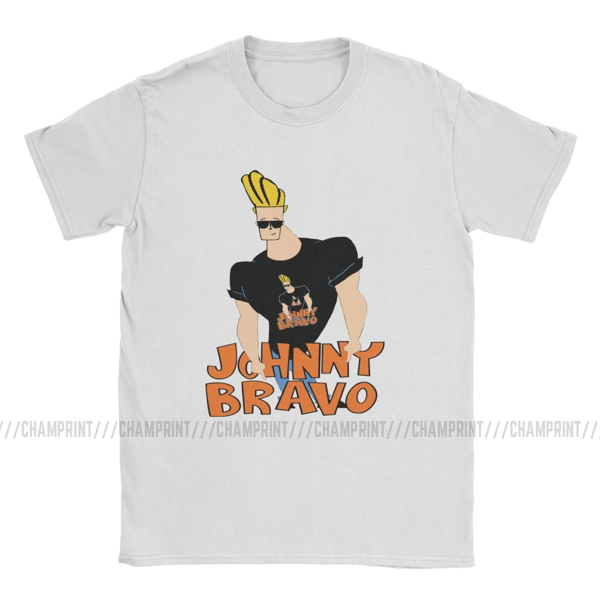 Джонни Bravo футболка Для мужчин хлопок Сумасшедший футболки с круглым вырезом симпатичная 90s мультфильмы поп очки футболки с изображениями героев из мультиков для мальчиков топы с короткими рукавами