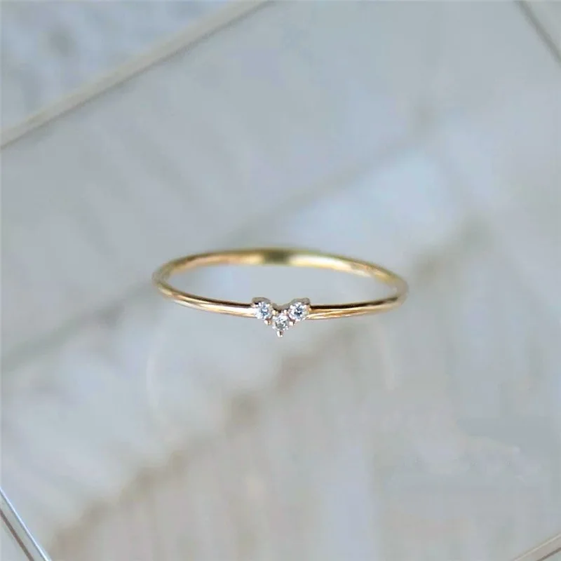 Тонкое кольцо с сердечком для женщин и девочек, нежный светильник, желтое золото, циркон, Просверленный, подарок на день рождения, ювелирное изделие, кольцо на палец, KAR173