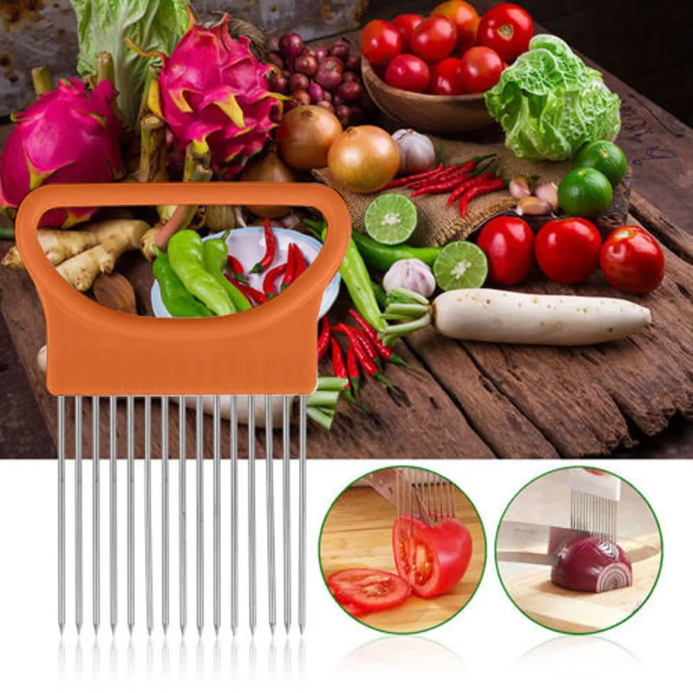 Приспособление для нарезки лука томатов на кухню, безопасная вилка,...